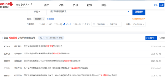實際上,在巨潮資訊網( 證監會指定的上市公司信息披露平臺 )用關鍵詞 “ 現金管理 ” 和 “ 理財產品 ” 進行搜索,你能看到最近一個月分別有 713 和 126 條公司公告,所以你很容易就理解,這是上市公司的一個基礎操作,具有普遍性。