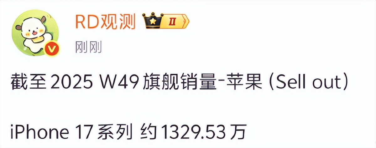 根據博主“ RD 觀測”的最新數據,截至 2025 年第 49 周,國內累計銷量已經飆到約 1329.53 萬臺。