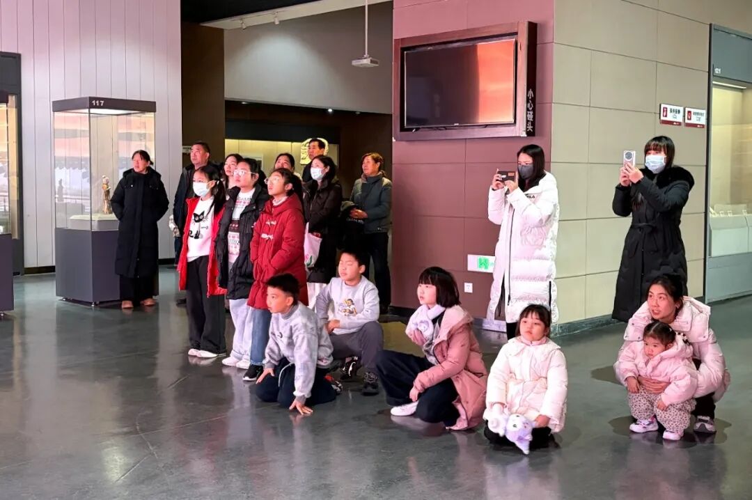 活動開始階段,講解員先帶領親子家庭參觀了展廳,解鎖商丘的千年文明密碼。從象征“天命玄鳥,降而生商”的“全息3D展示”,到見證漢梁盛景的金縷玉衣,再到觀看三維立體全息影像,重返應天學府體驗書院繁華盛景。通過講解,讓家長和孩子們感受商丘作為“殷商之源”的厚重底蘊。