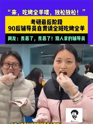 12月15日(發布),河南許昌,“來,吃烤全羊嘍,放松放松!”考研最后階段,90后輔導員自費請全班吃烤全羊,網友:羨慕了,羨慕了!別人家的輔導員。
