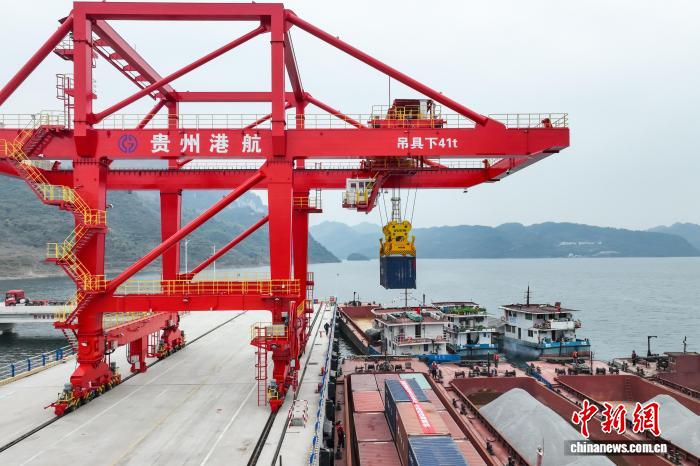 中新網(wǎng)貴州甕安12月16日電 (記者 瞿宏倫)一臺(tái)橋式起重機(jī)16日將裝有沉淀硫酸鋇的集裝箱吊入“航電624”貨船后起航,貴州首個(gè)自動(dòng)化碼頭——甕安港云中港區(qū)(簡(jiǎn)稱,云中港區(qū))正式開港。