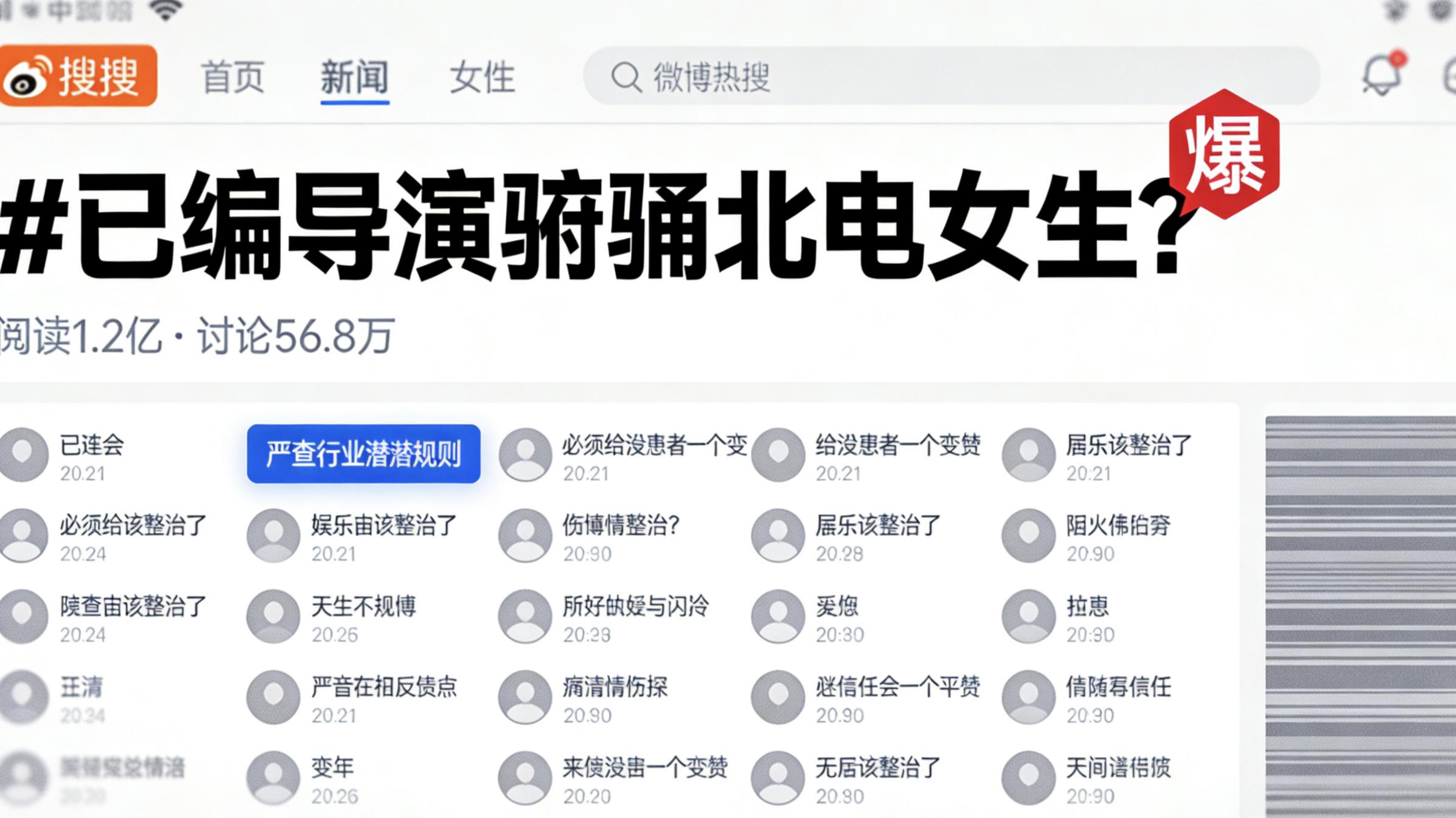 娛樂圈又爆大瓜!近日博主“美工張鐵牛”的一則爆料刷屏全網,直指某已婚六旬第五代知名導演,借選角名義追求北電女學生,遭拒后仍持續騷擾,把行業潛規則的遮羞布撕得稀碎。
