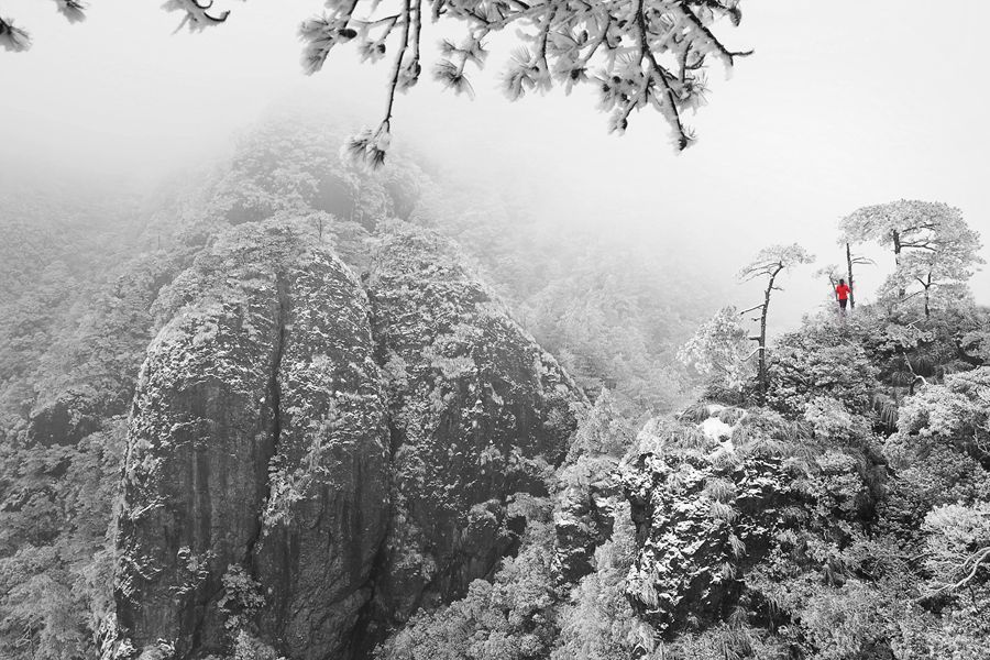 - “寒云鎖嶺雪漫漫,千樹瓊裝掩翠巒”