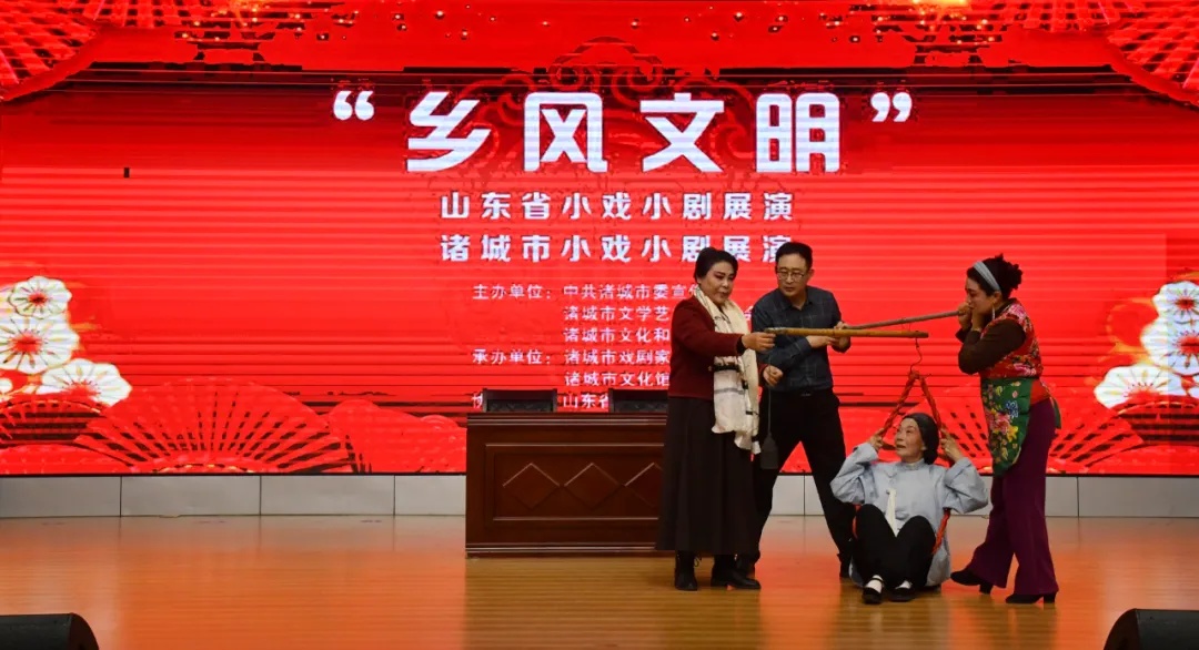 為深入推進鄉風文明建設、豐富基層群眾文化生活,自12月12日起,濰坊諸城市文化館聯合山東省小戲小劇展演優秀團隊——濰坊諸城市戲劇家協會,共同開啟“鄉風文明”主題基層巡演。截至目前,演出已先后走進興華路實驗小學東校區、濰坊工商職業技術學院、昌城敬老院及南湖社區常山等地,以群眾喜聞樂見的文藝形式傳遞文明新風。