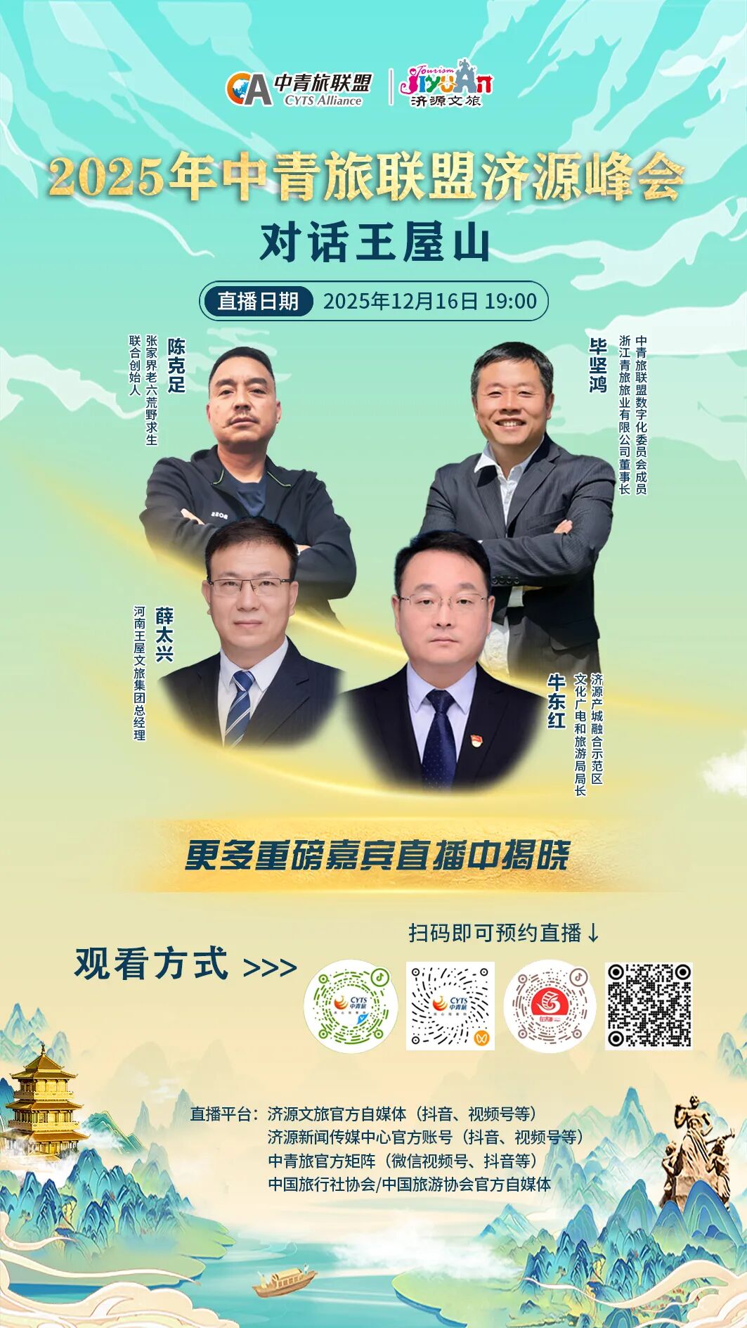 2025年中青旅聯盟濟源峰會活動將于2025年12月16日~18日在愚公故里隆重舉行!這不僅是一場文旅精英的行業盛會,更是濟源向世界展示其獨特文化和旅游資源的重要平臺。