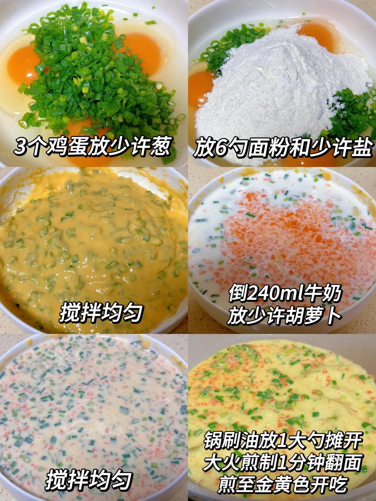 雞蛋、蔥花、面粉、牛奶、胡蘿卜碎、少許鹽、食用油