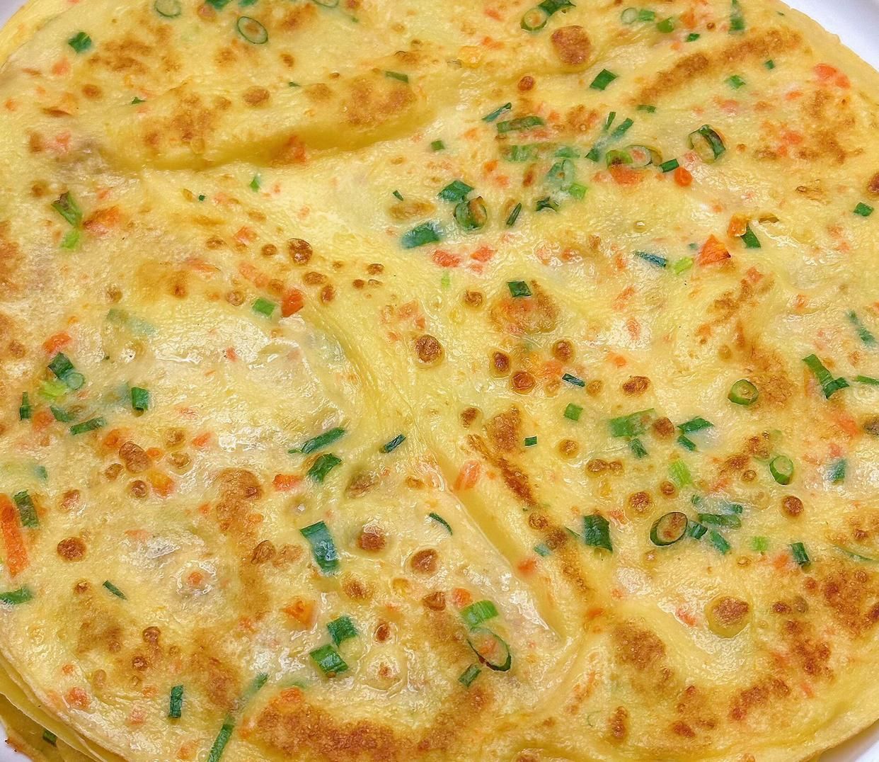 但也不能過于稀了,不然攤在鍋里會(huì)爛成一團(tuán),無法成型。所以,攪拌的時(shí)候要把握好力度和速度,讓面糊達(dá)到恰到好處的濃稠度。