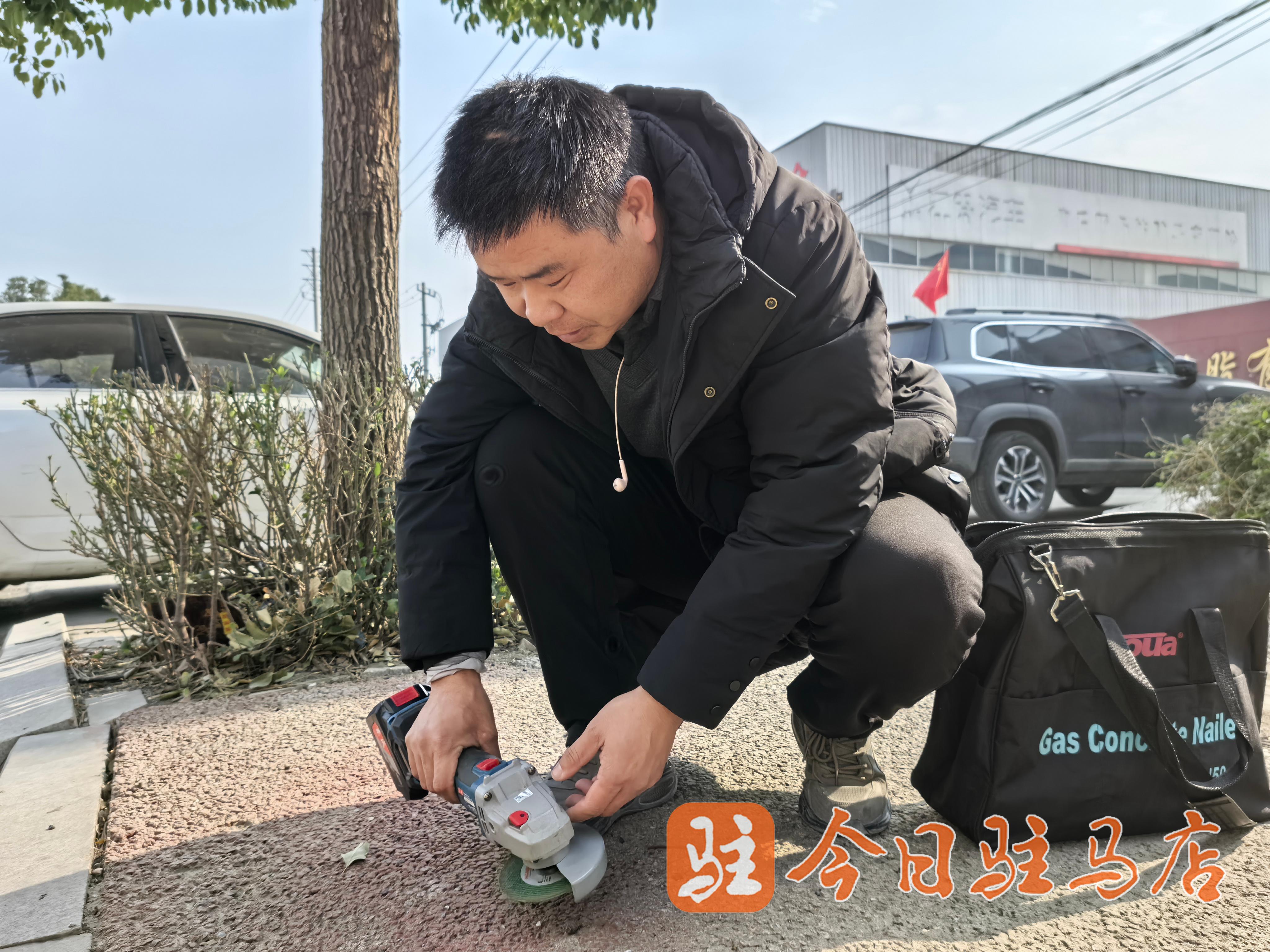 這一切或許都源于王濤的熱心腸。他隨身攜帶工具包,等候公交車的間隙、打零工的閑暇……他就會在周邊轉轉,看到路面凸起的地釘,就拿出角磨機打磨平整。“這些地釘都是施工后沒有清理干凈,遺留的安全隱患,很容易絆倒人。沒事的時候我就轉著看看,收拾幾個地釘。”他一邊擦拭工具,一邊輕描淡寫地說。