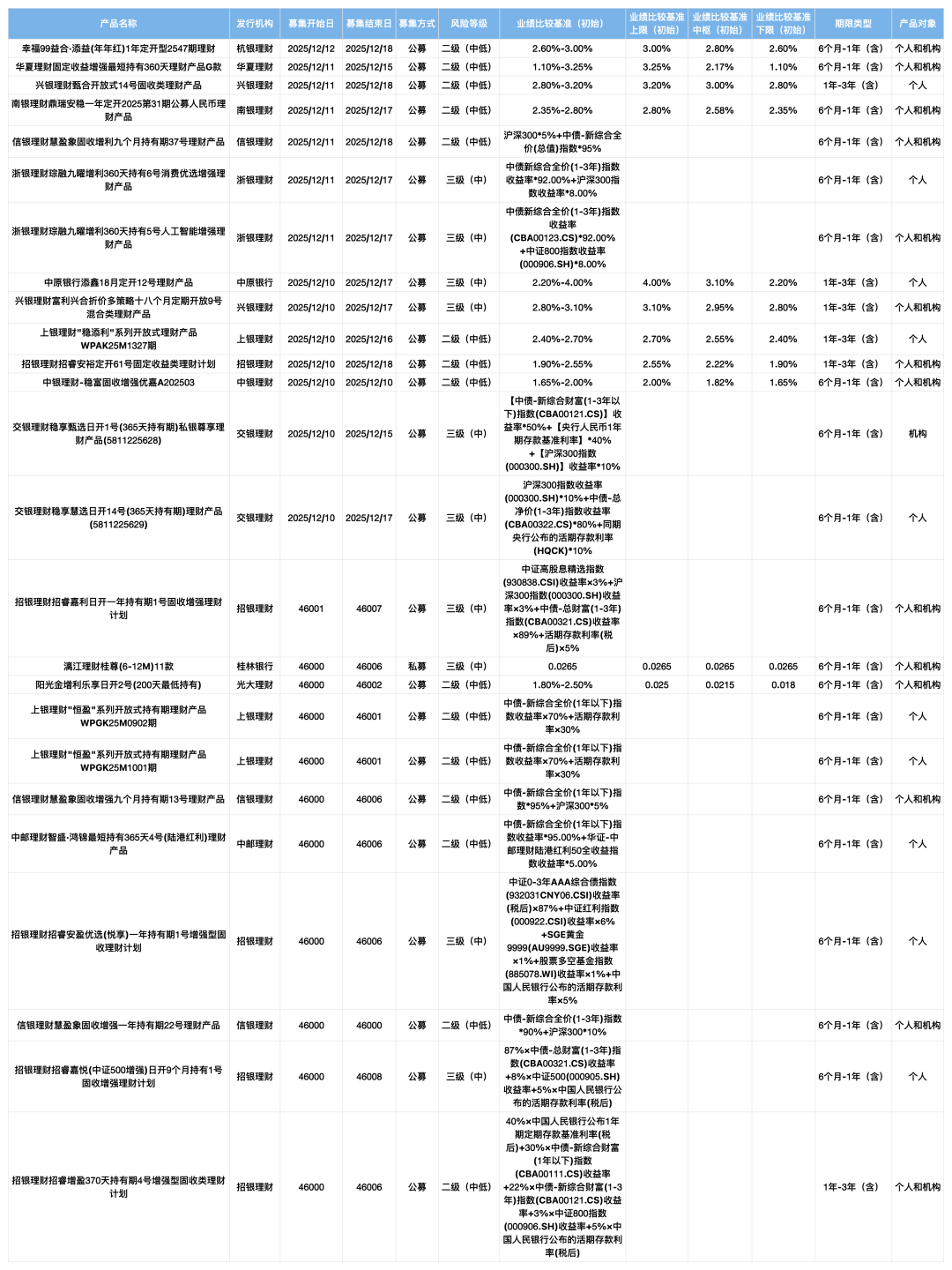 產(chǎn)品周報(bào)|銀行理財(cái)產(chǎn)品周報(bào)(20251216)
