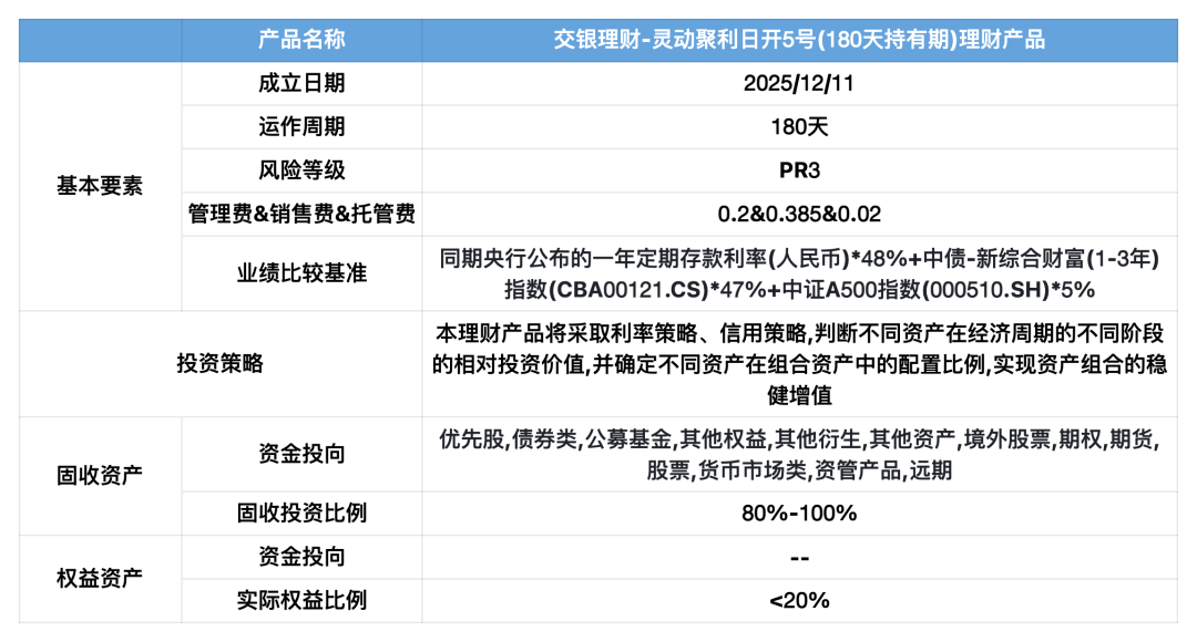 表20 交銀理財(cái)-靈動(dòng)聚利日開5號(hào)(180天持有期)理財(cái)產(chǎn)品基本信息