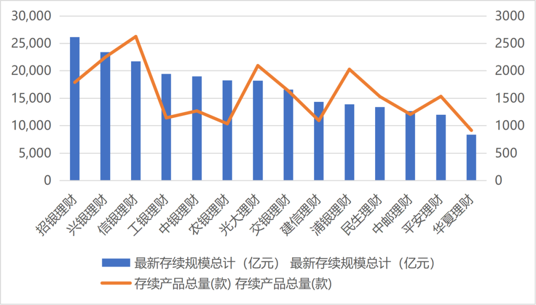 本周(20251208-20251214)全市場理財(cái)存續(xù)數(shù)量有所增加,全市場理財(cái)產(chǎn)品存續(xù)總量45566款,較上周增加168款,最新存續(xù)規(guī)模較上周減少332.923億元,投資性質(zhì)方面,以固定收益型、現(xiàn)金管理型為主,最新存續(xù)規(guī)模占比分別為76.54%(-0.01pct),20.89%,固定收益型產(chǎn)品規(guī)模占比略微下降。大部分理財(cái)子存續(xù)規(guī)模小幅上升,截至本周共有14家理財(cái)子存續(xù)規(guī)模破萬億,其中規(guī)模前三的理財(cái)子分別為招銀理財(cái)(26170億)、興銀理財(cái)(23419億)、信銀理財(cái)(21708億)。存續(xù)產(chǎn)品數(shù)量最多的理財(cái)子為信銀理財(cái)(2626款)。