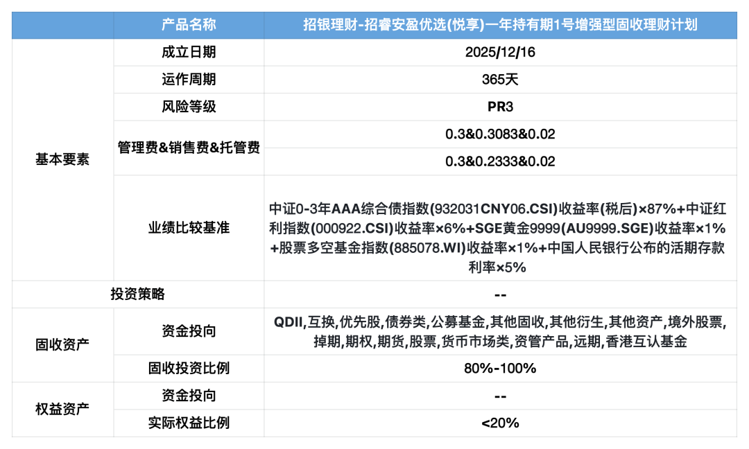 表16?招銀理財(cái)-招睿安盈優(yōu)選(悅享)一年持有期1號(hào)增強(qiáng)型固收理財(cái)計(jì)劃基本信息