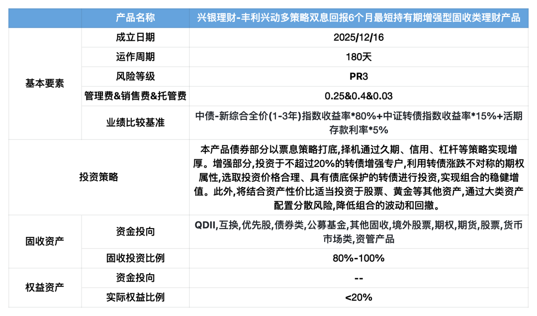 表18?興銀理財(cái)-豐利興動(dòng)多策略雙息回報(bào)6個(gè)月最短持有期增強(qiáng)型固收類理財(cái)產(chǎn)品基本信息