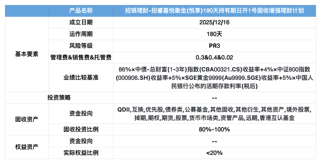 表15 招銀理財(cái)-招睿嘉悅衡金(悅享)180天持有期日開1號(hào)固收增強(qiáng)理財(cái)計(jì)劃基本信息