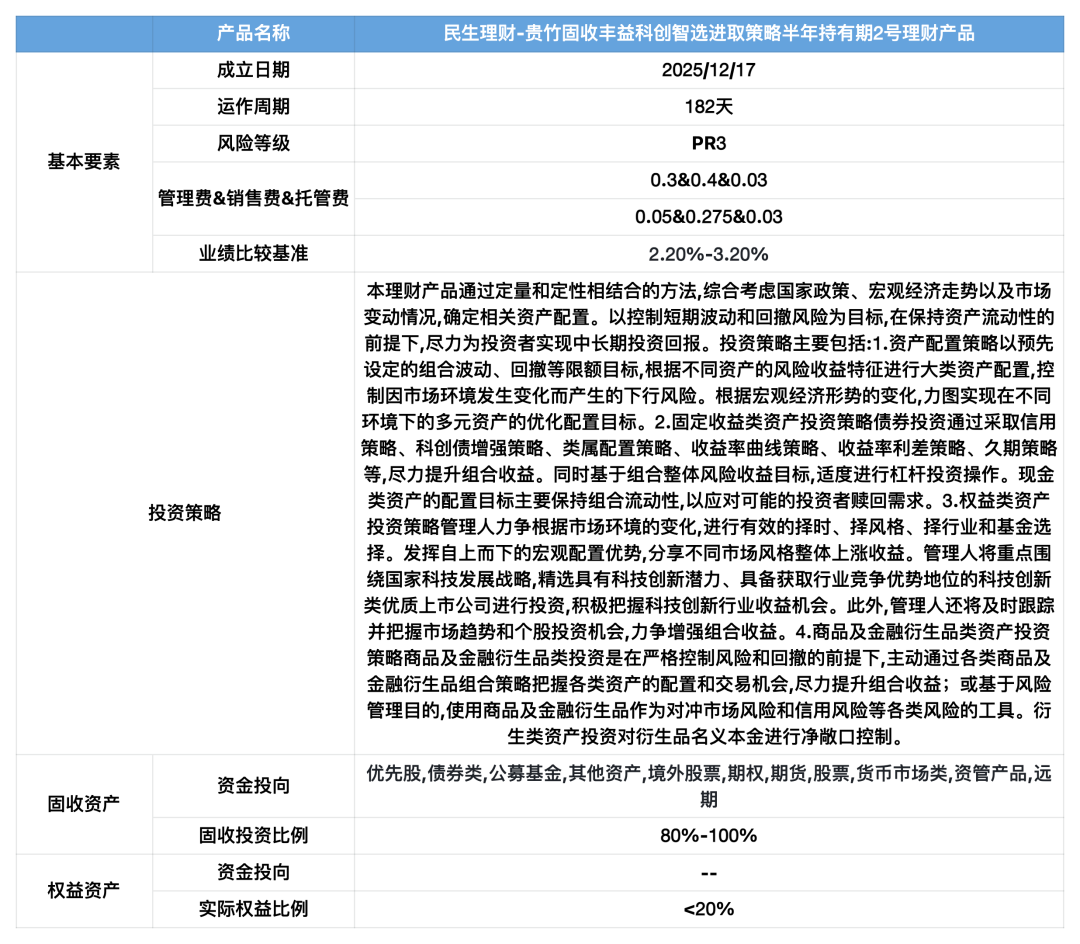 表9 民生理財(cái)-貴竹固收豐益科創(chuàng)智選進(jìn)取策略半年持有期2號(hào)理財(cái)產(chǎn)品基本信息