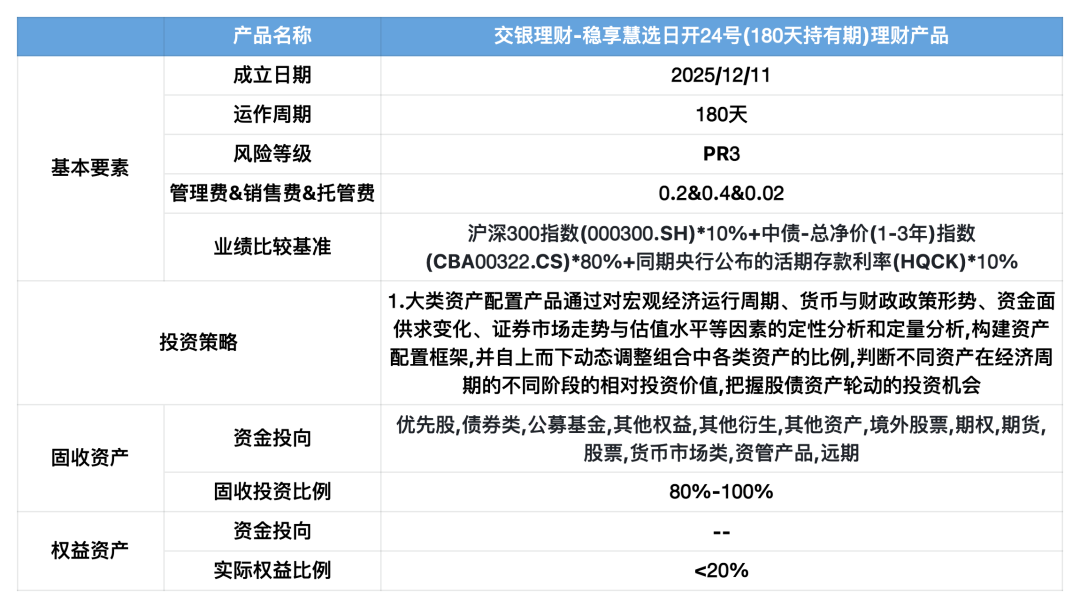 表12 交銀理財(cái)-穩(wěn)享慧選日開14號(hào)(365天持有期)理財(cái)產(chǎn)品基本信息
