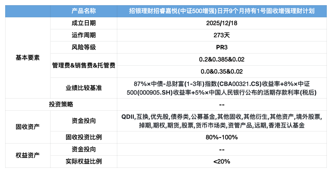 表21?招銀理財(cái)招睿嘉悅(中證500增強(qiáng))日開9個(gè)月持有1號(hào)固收增強(qiáng)理財(cái)計(jì)劃基本信息