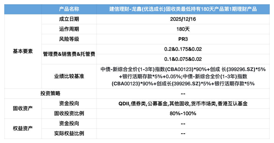 表6?建信理財(cái)-龍鑫(優(yōu)選成長)固收類最低持有180天產(chǎn)品第1期理財(cái)產(chǎn)品基本信息