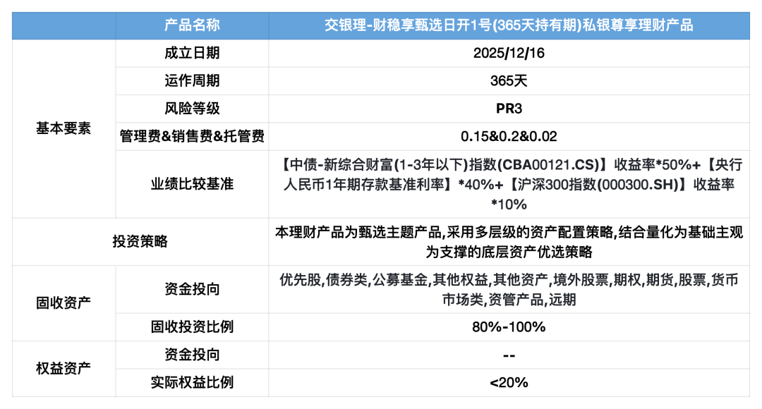 表11 交銀理-財(cái)穩(wěn)享甄選日開1號(hào)(365天持有期)私銀尊享理財(cái)產(chǎn)品基本信息