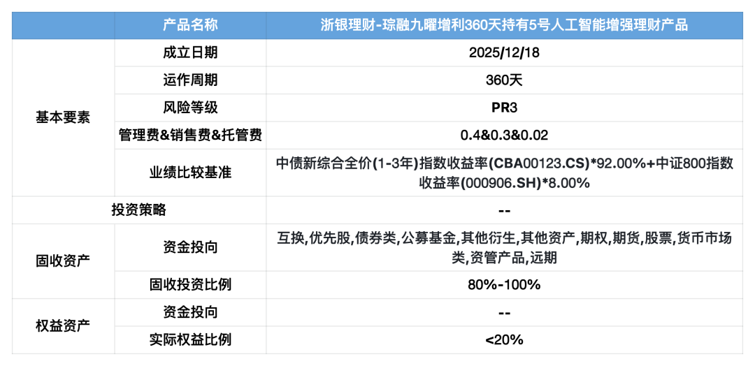 表10?浙銀理財(cái)-琮融九曜增利360天持有5號(hào)人工智能增強(qiáng)理財(cái)產(chǎn)品基本信息