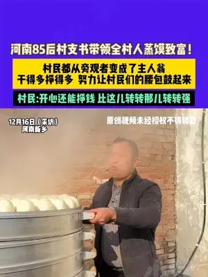 12月16日(采訪),河南新鄉(xiāng),河南85后村支書帶領(lǐng)全村人蒸饃致富!村民都從旁觀者變成了主人翁,干得多掙得多,努力讓村民們的腰包鼓起來,村民:開心還能掙錢 比這兒轉(zhuǎn)轉(zhuǎn)那兒轉(zhuǎn)轉(zhuǎn)強(qiáng)。