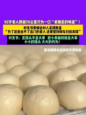 12月18日(采訪)河南新鄉(xiāng),村支書帶領(lǐng)全村人蒸饃致富,“為了這些出不了遠(yuǎn)門的老人,還要堅(jiān)持騎車掃街賣饃” ,92歲老人跨越70公里只為一口“老娘蒸的味道”!村支書:蒸饅頭不是大事 ,把小事做好就是大事,小小的饅頭,大大的作為!