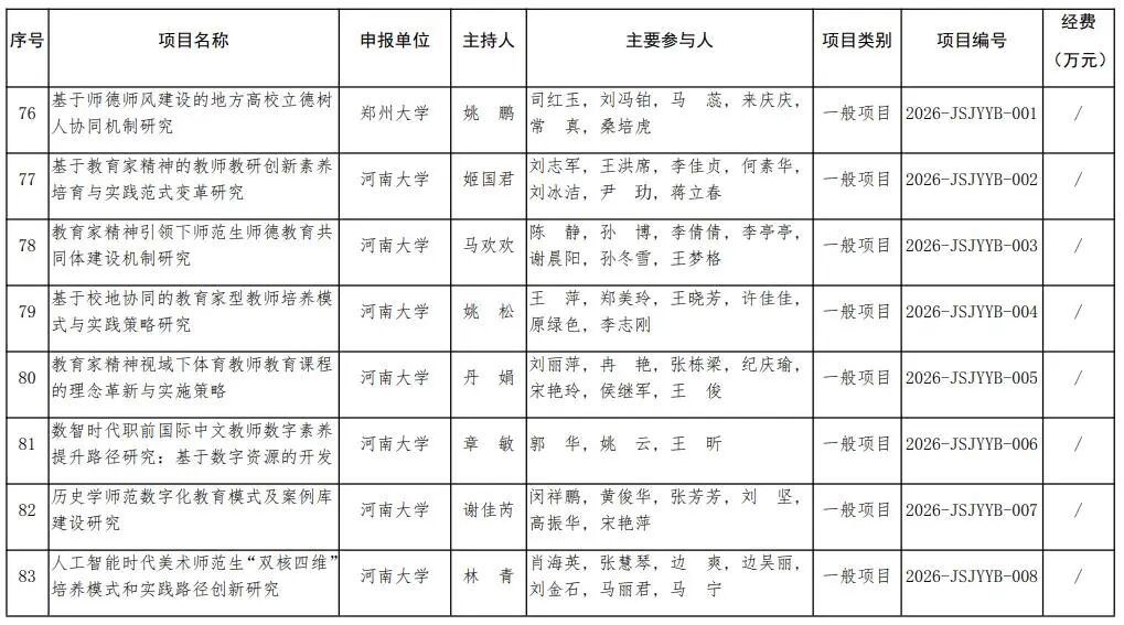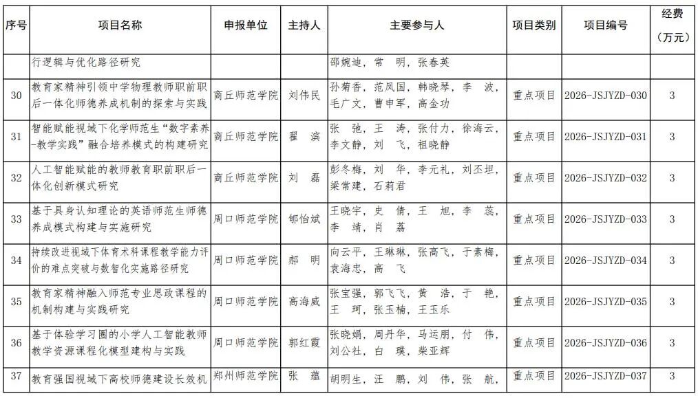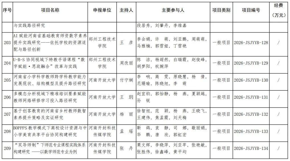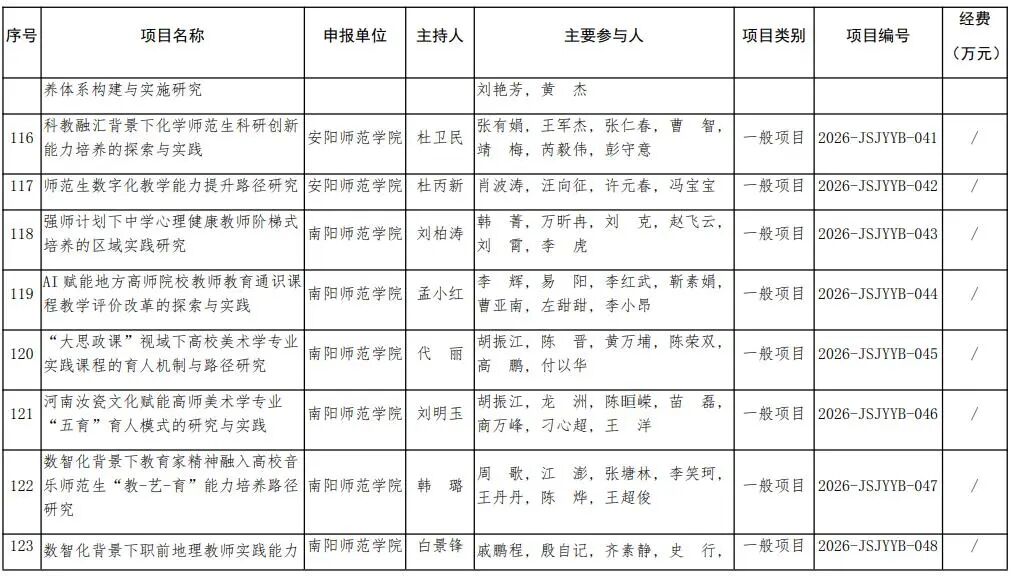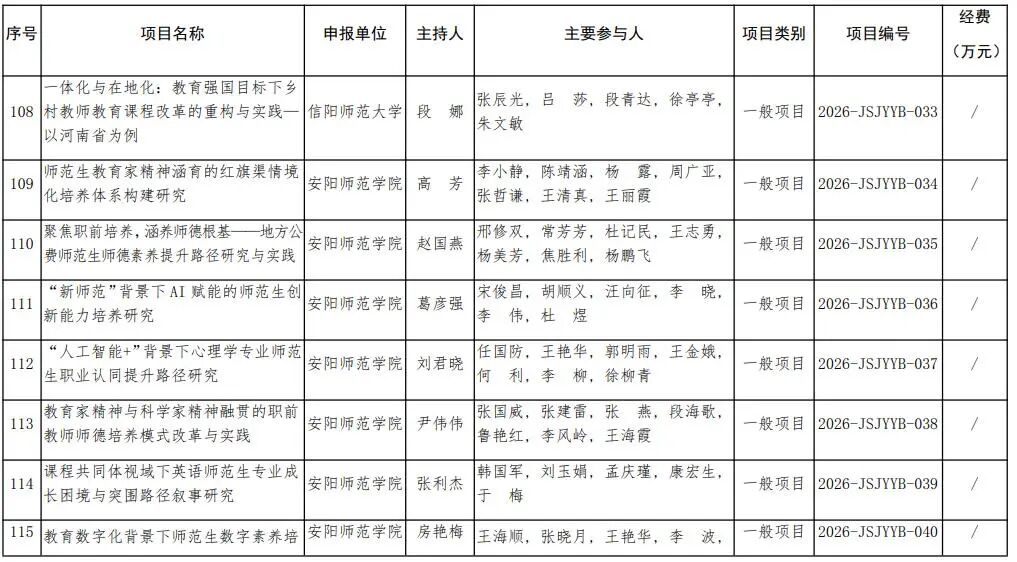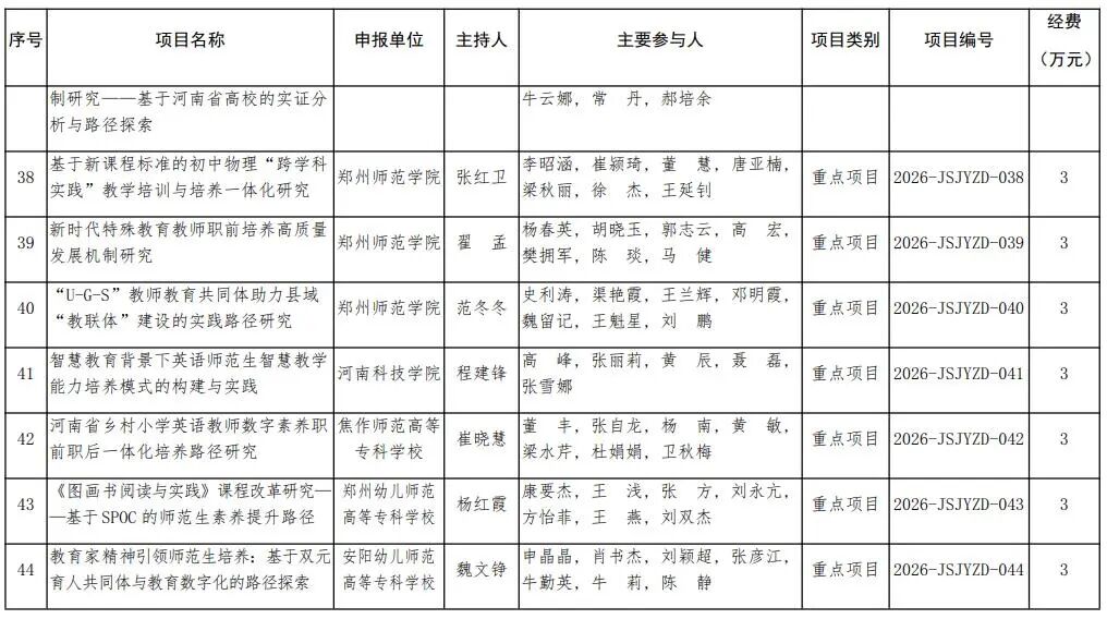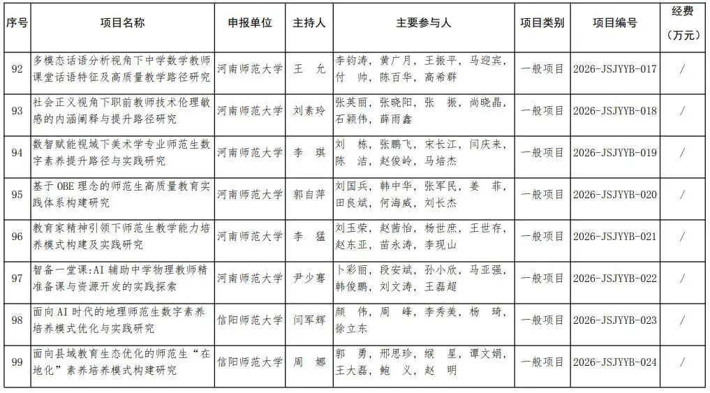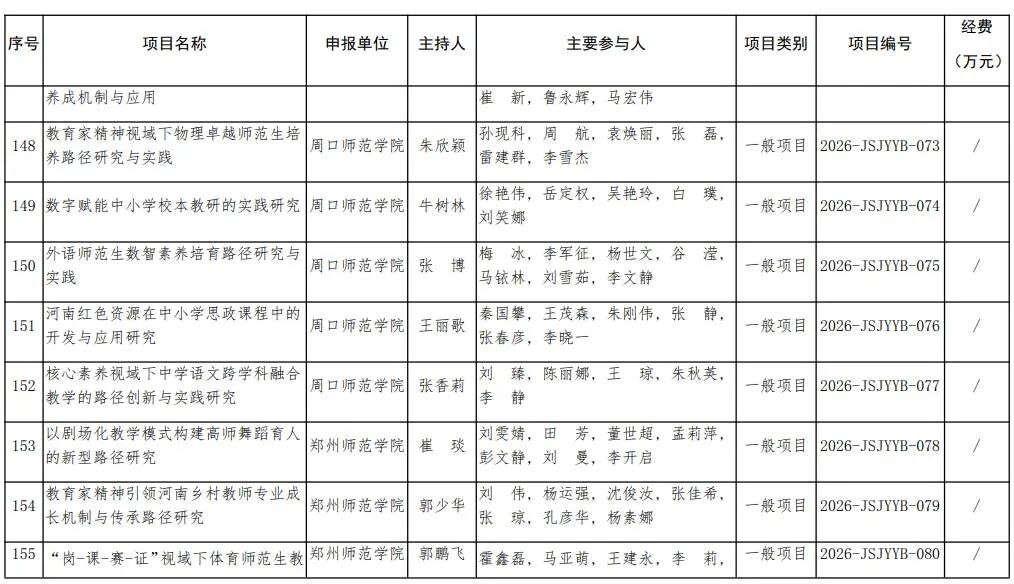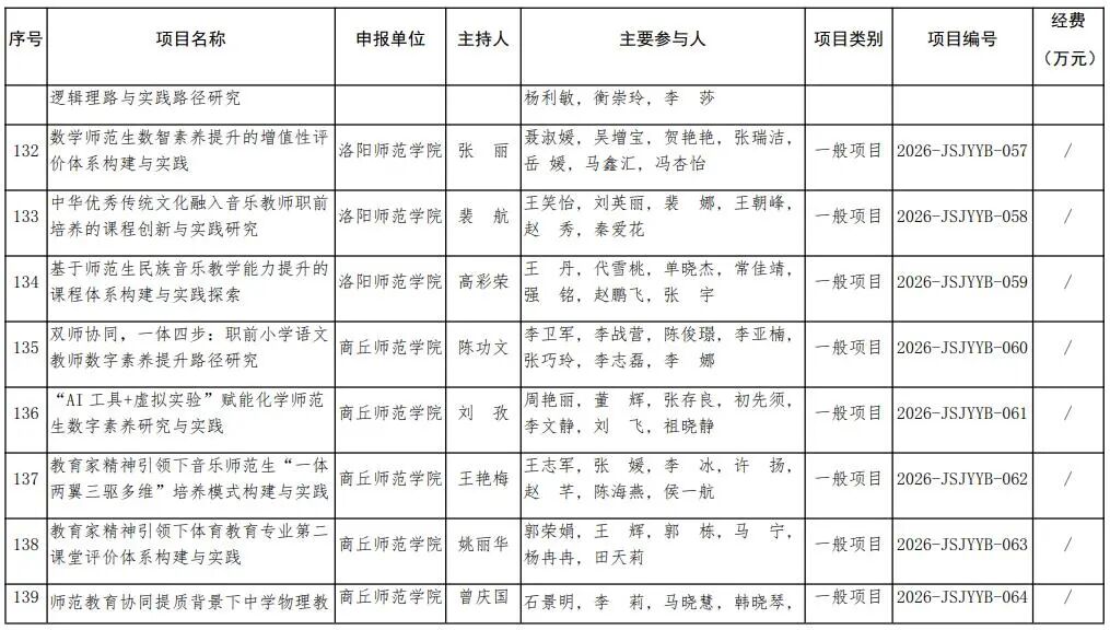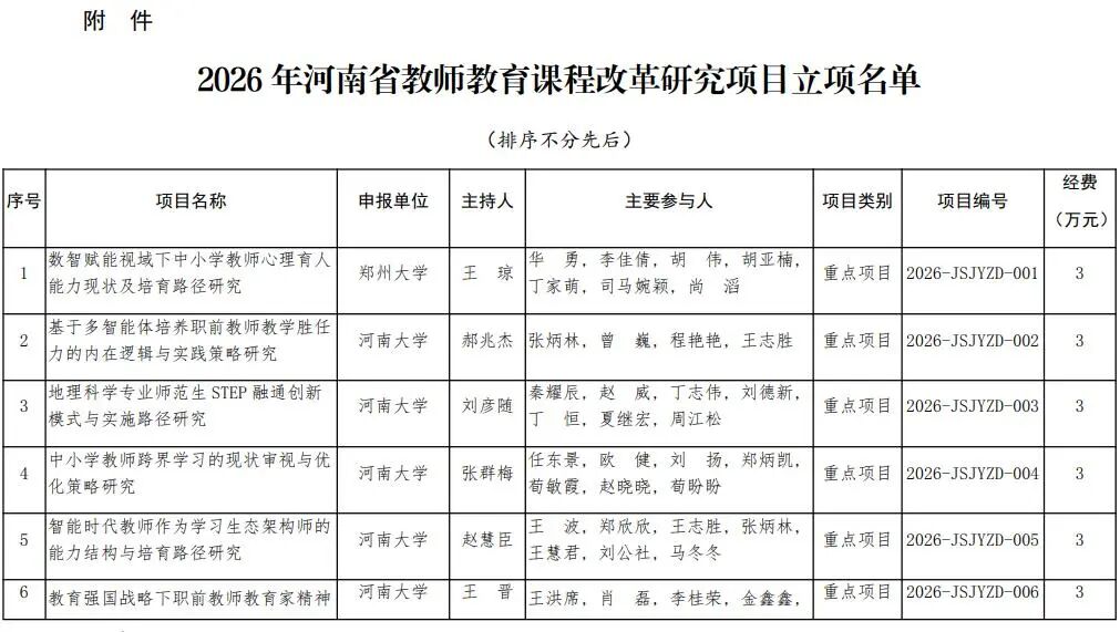 河南省教育廳關于公布2026年河南省教師教育課程改革研究項目立項名單的通知
