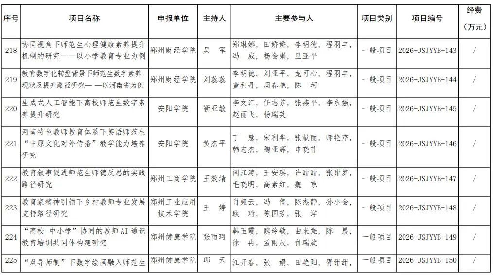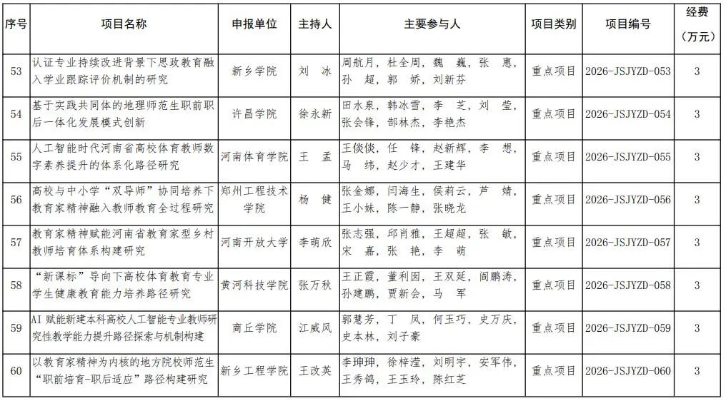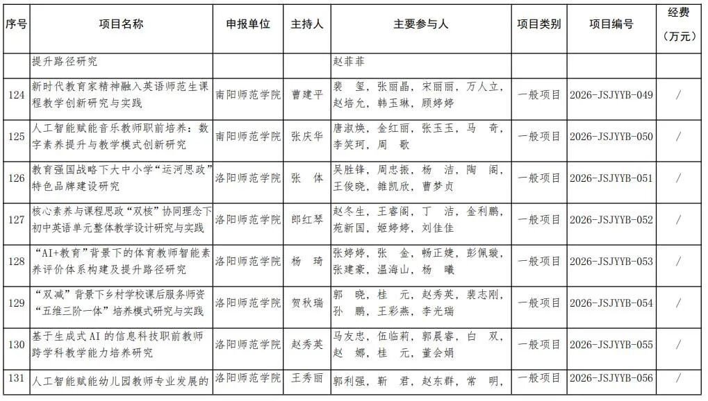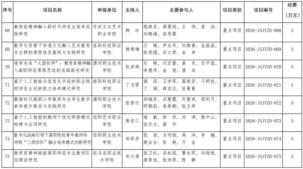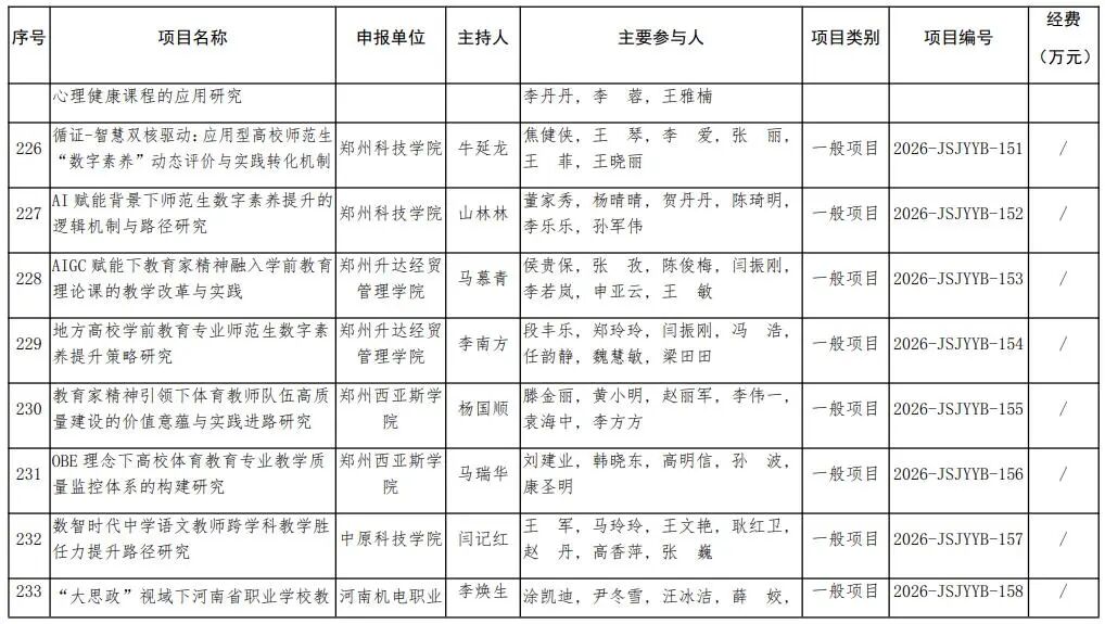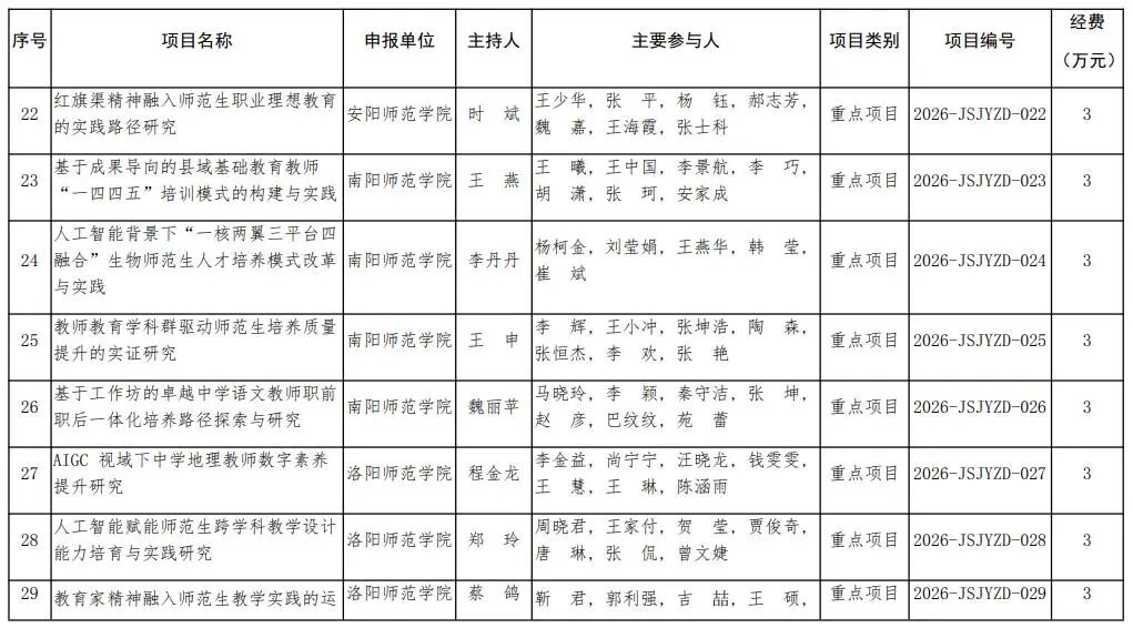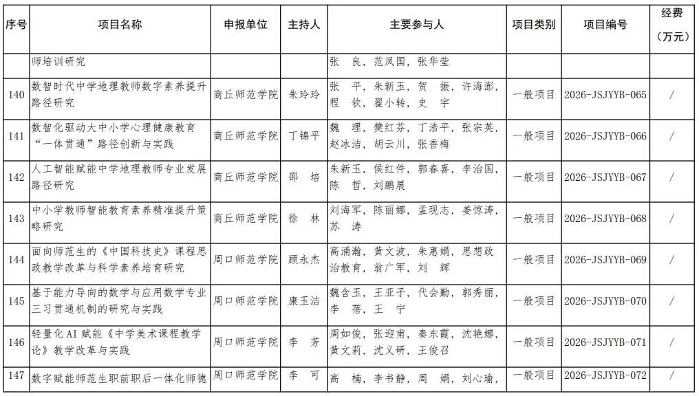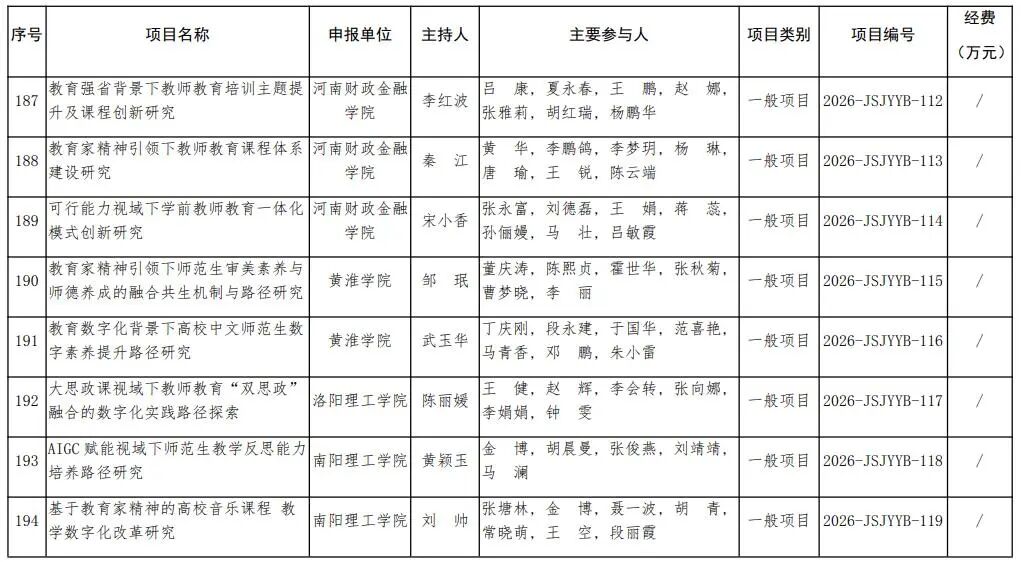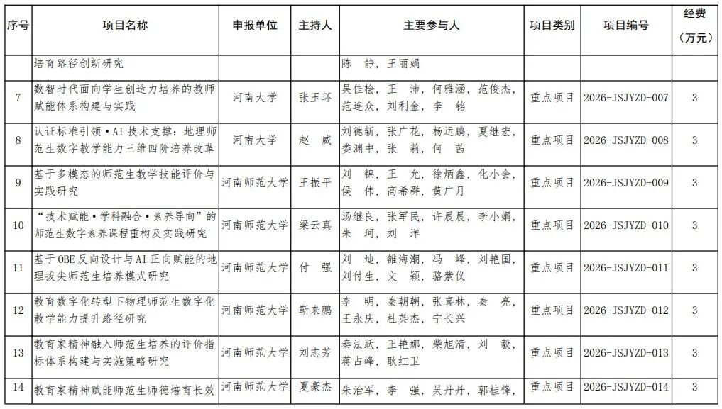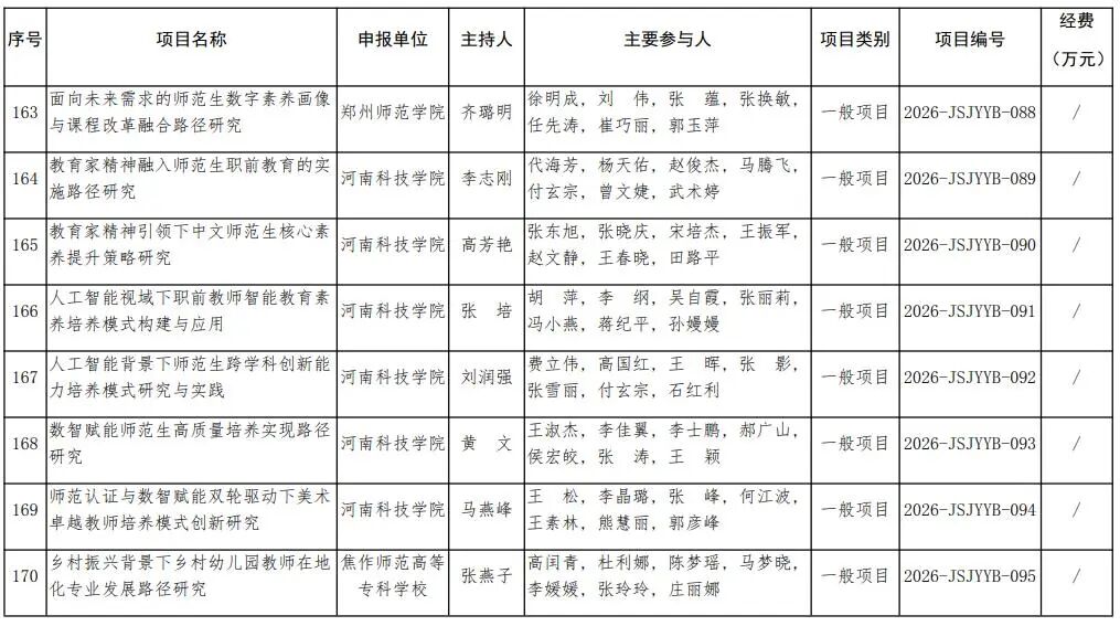 河南省教育廳關于公布2026年河南省教師教育課程改革研究項目立項名單的通知