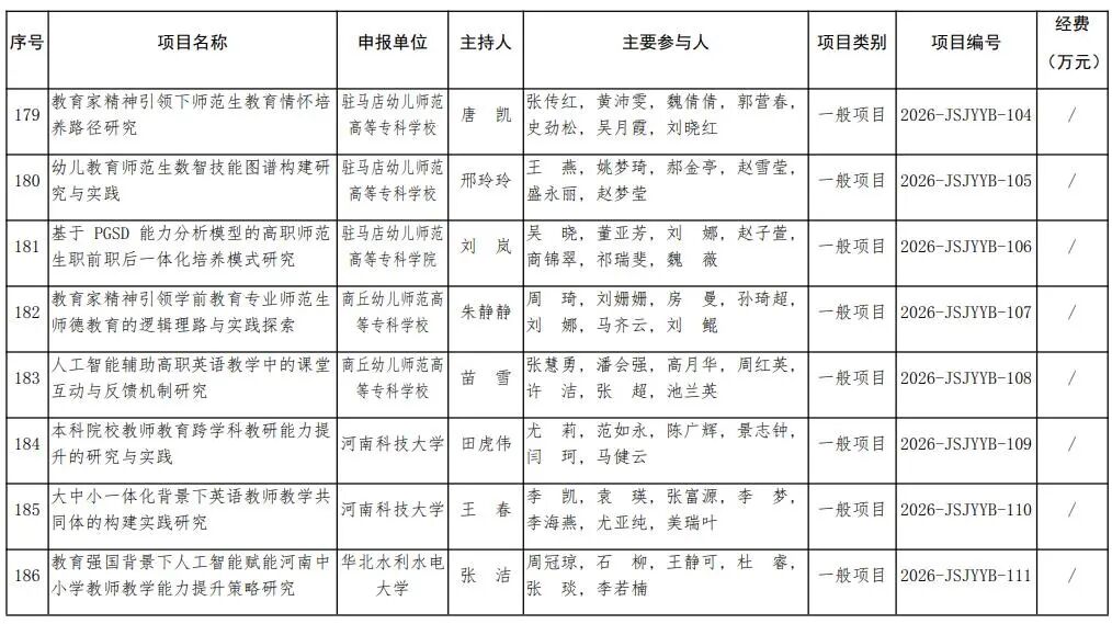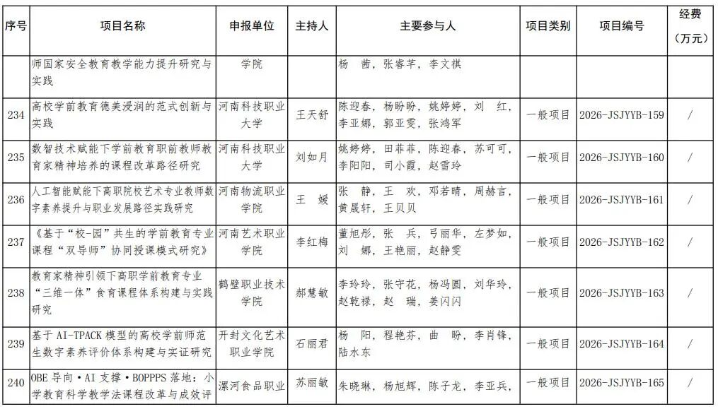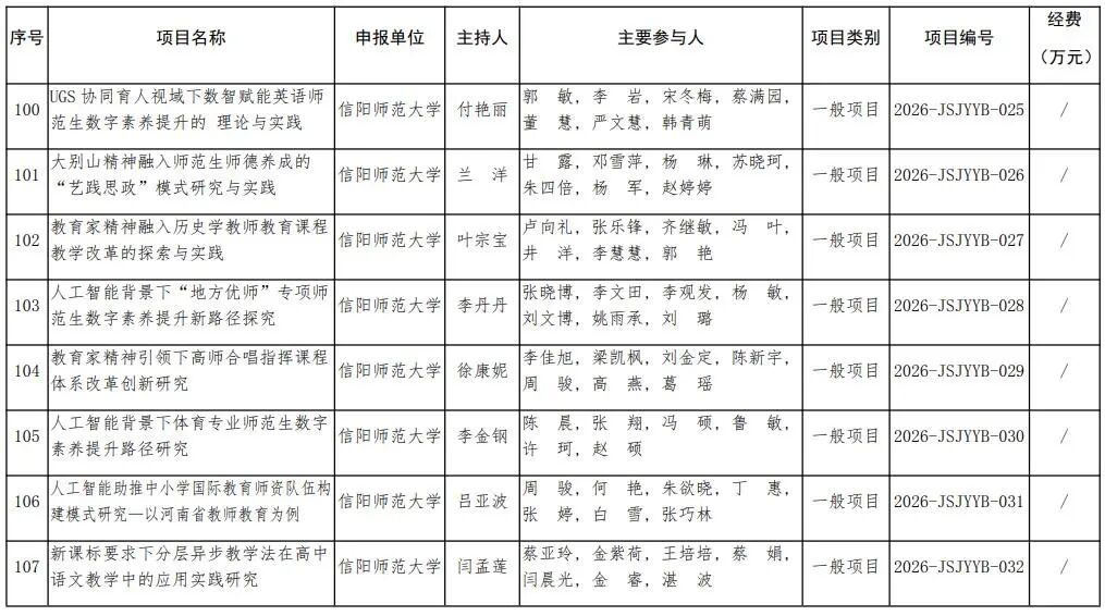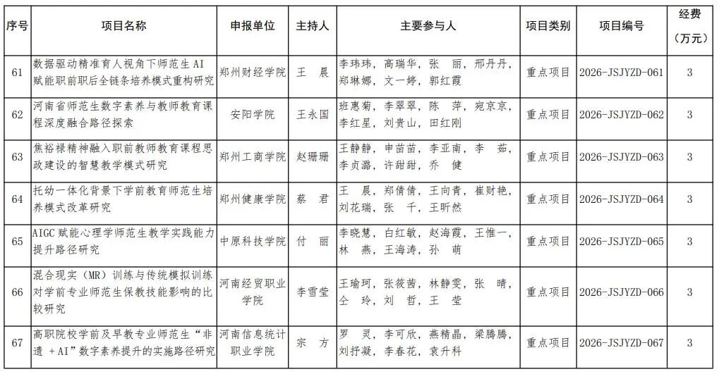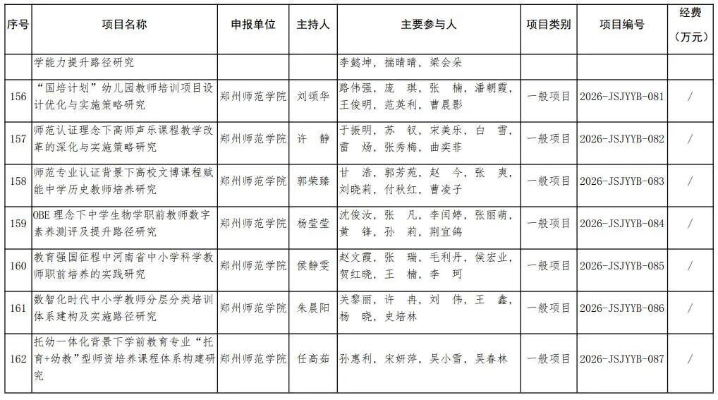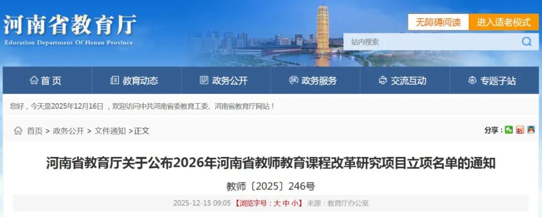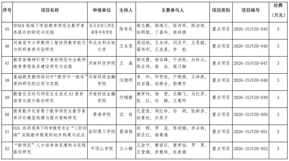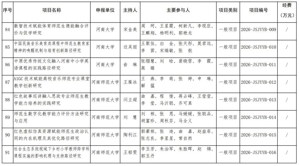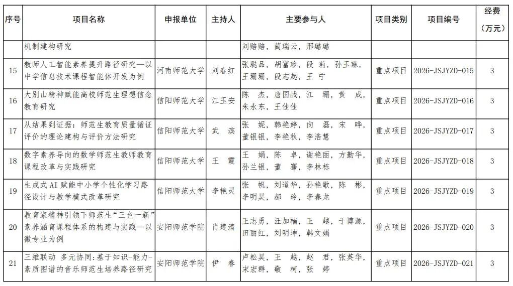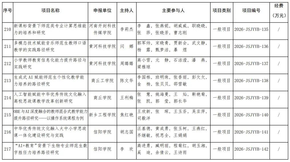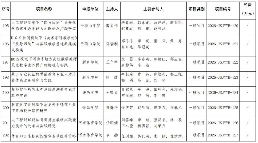 河南省教育廳關于公布2026年河南省教師教育課程改革研究項目立項名單的通知
