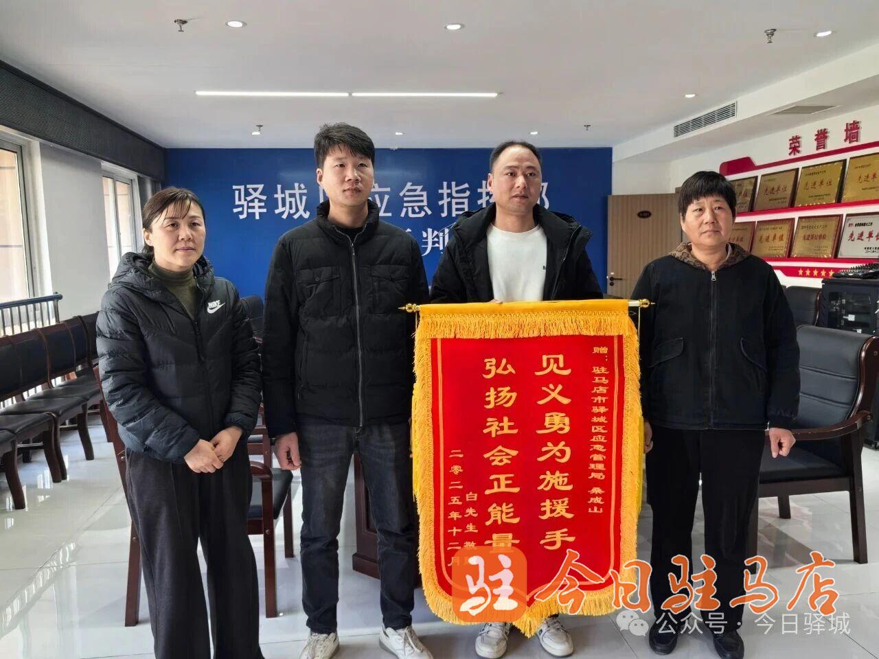 12月9日,驛城區應急管理局會議室里暖意融融,氣氛溫馨而熱烈,一面繡有“見義勇為施援手 弘揚社會正能量”的鮮紅錦旗送到該局,以此感謝該局工作人員、退役消防員桑成山同志在危急時刻挺身而出,成功挽救落水女孩的生命。