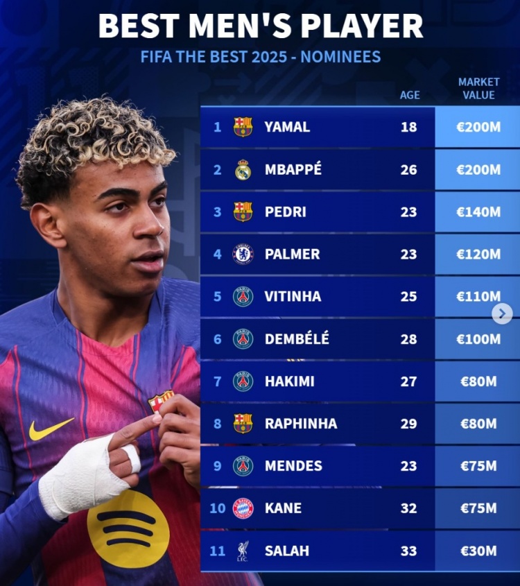 當(dāng)最新的世界足球先生提名名單揭曉,人們談?wù)摰牟辉賰H僅是精湛的盤帶、精準(zhǔn)的射門或是決定比賽的關(guān)鍵傳球。一份令人瞠目的“身價(jià)榜”占據(jù)了討論的中心——亞馬爾和姆巴佩的2億歐元估價(jià)高懸頂端,帕爾默、登貝萊等新星悍將緊隨其后。在這個(gè)數(shù)字化的時(shí)代,轉(zhuǎn)會(huì)市場(chǎng)的標(biāo)價(jià)已成為衡量足球運(yùn)動(dòng)員影響力的重要尺度,甚至成為了一種另類的榮譽(yù)勛章。