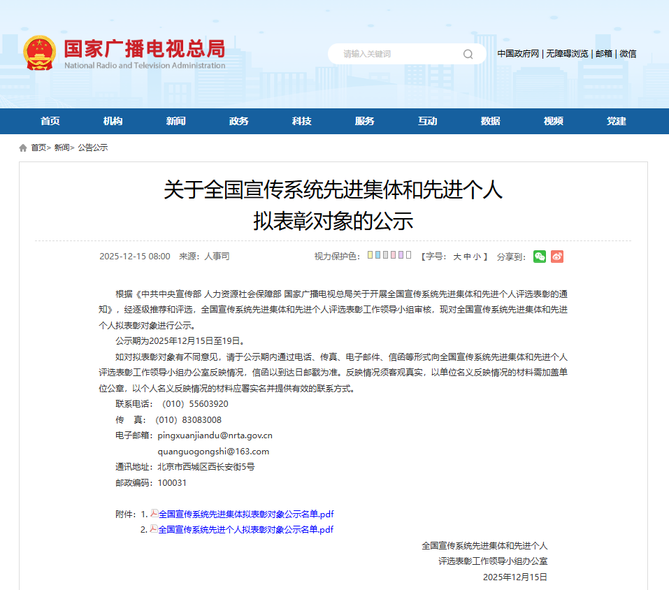發(fā)布全國(guó)宣傳系統(tǒng)先進(jìn)集體和先進(jìn)個(gè)人