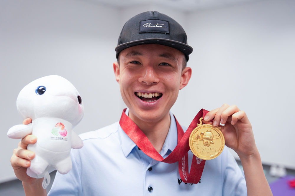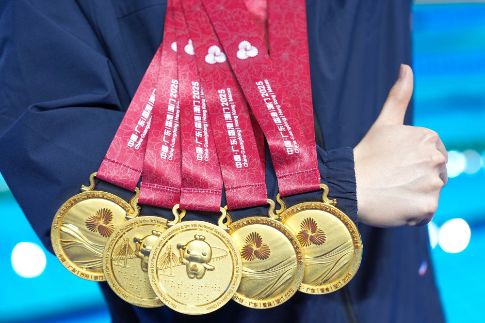 14日,全國第十二屆殘疾人運動會暨第九屆特殊奧林匹克運動會特奧游泳賽場內(nèi)浪花翻涌、掌聲雷動。在男子22-29歲組4X50米混合泳接力決賽中,孫宇亮作為最后一棒一騎絕塵,幫助內(nèi)蒙古隊奪得金牌。這也是他在本屆賽會上收獲的第五枚金牌。 ??12月14日,孫宇亮在男子22-29歲組4X50米自由泳接力第1組決賽后慶祝奪冠。新華社記者 伍志尊 攝 ??1999年出生的孫宇亮,5歲時被確診患有孤獨癥。與大眾對孤獨癥患者“沉默內(nèi)向”的刻板印象不同,他自幼便對運動充滿熱愛,滑冰、騎自行車、跑步以及各類球類運動都參與過。 ??2016年,孫宇亮作為首批隊員進(jìn)入呼和浩特特奧冰輪速滑隊學(xué)習(xí),開始特奧運動生涯。 ??孫宇亮家住鄂爾多斯,距離訓(xùn)練基地有兩個多小時車程。為了保證每月4次訓(xùn)練,家人常年驅(qū)車往返接送,風(fēng)雨無阻。夏天練輪滑、游泳和田徑,冬天在戶外冰場練習(xí)滑冰。 ??“每次訓(xùn)練結(jié)束回家的路上,他總是興沖沖地跟我分享訓(xùn)練內(nèi)容,盼著下一次訓(xùn)練快點到來。”母親李錚說,自從入隊訓(xùn)練、參加各種比賽之后,孫宇亮變得更加自信、開朗。 ??12月14日,孫宇亮展示本屆賽會獲得的五枚金牌。新華社記者 伍志尊 攝 ??長期刻苦的訓(xùn)練讓孫宇亮在速滑、田徑和游泳項目上不斷突破。2019年,在阿聯(lián)酋迪拜舉辦的第十五屆世界夏季特殊奧林匹克運動會上,孫宇亮與隊友為中國隊奪得田徑男子4X400米接力冠軍。 ??在本次特奧游泳比賽中,孫宇亮的自信與活力使他成為全場焦點。每次入場時,他總會高高舉起手臂,向看臺上的觀眾熱情揮手;剛觸壁終點線,他便第一時間向觀眾和裁判致意,用最純粹的方式分享勝利喜悅。 ??“他特別享受比賽,一入場就是場上的‘顯眼包’,比誰都興奮。”孫宇亮的體能教練黃雅玲介紹,不論賽程多密集,他總能“滿血復(fù)活”投入下一場比賽。 ??12日,孫宇亮在男子22-29歲組50米自由泳第一組決賽中,以31秒36刷新個人最好成績,奪得他本次賽會的首金。賽后,他反復(fù)念叨著這個數(shù)字,“比之前快,比之前更快了!” ??12月12日,孫宇亮在男子22-29歲組50米自由泳第1組頒獎儀式后展示金牌。新華社記者 伍志尊 攝 ??14日的男子22-29歲組4X50米自由泳接力第一組決賽更為驚心動魄。內(nèi)蒙古隊前三棒一直處于落后局面,孫宇亮接棒后縱身躍入泳池,瞬間開啟“沖刺模式”。由于他習(xí)慣右側(cè)換氣,看不到左側(cè)對手的位置,但憑借不服輸?shù)膭蓬^,他最后50米實現(xiàn)精彩反超,觀眾席瞬間沸騰?!爱?dāng)時什么都沒想,就想著拼盡全力往前游?!?/p>