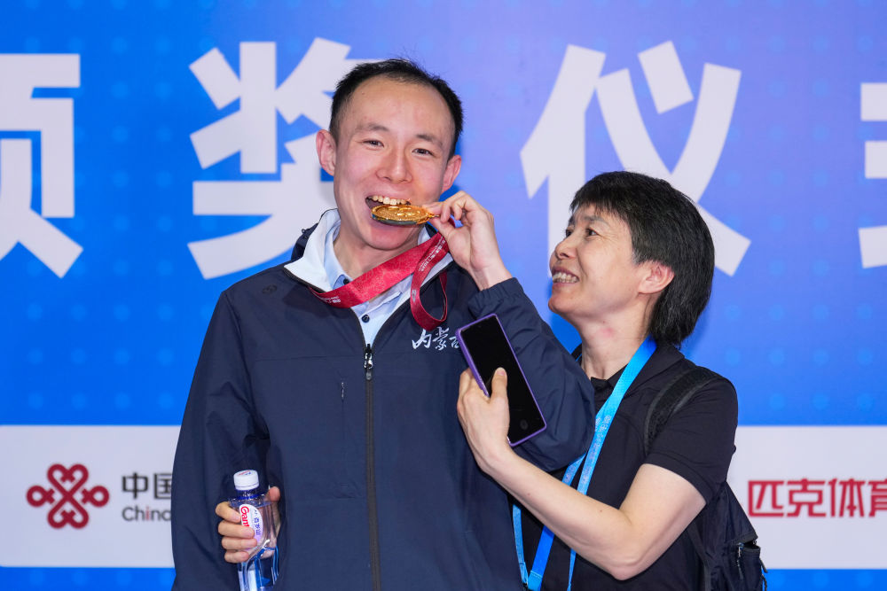 ??“所有運動里面我最喜歡游泳,最喜歡的運動員是潘展樂?!睂O宇亮說。潘展樂在巴黎奧運會男子4X100米混合泳接力決賽中上演最后一棒超級逆轉(zhuǎn),助中國隊奪下金牌,孫宇亮則在全國殘?zhí)貖W賽場上致敬了自己的榜樣。 ??12月12日,孫宇亮(左)和母親在男子22-29歲組50米自由泳第1組頒獎儀式后合影。新華社記者 伍志尊 攝 ??從跨城訓(xùn)練的常年堅持,到國內(nèi)外賽場屢創(chuàng)佳績,運動不僅讓孫宇亮收獲了榮譽(yù),更讓他突破了孤獨癥帶來的障礙,變得愈發(fā)自信、開朗、堅韌。正是這份對運動的熱愛與堅持,讓他在自己的賽道上熠熠生輝。