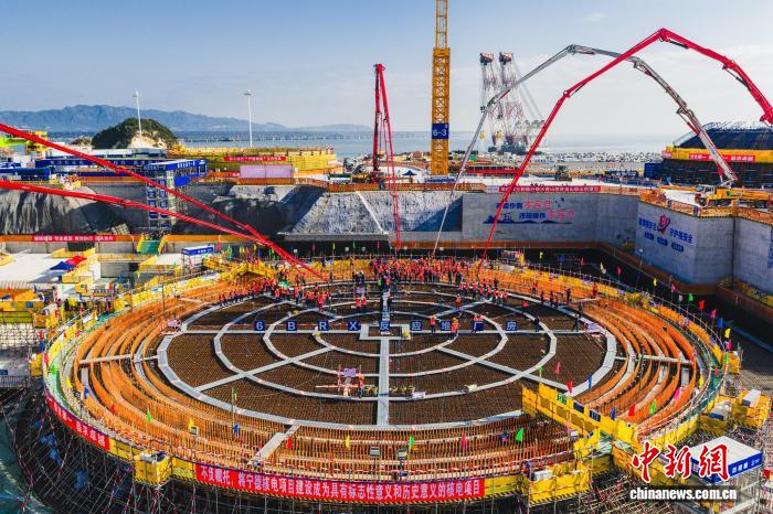 “本次6號機組核島混凝土澆筑總量約8819.2立方米,持續約55小時。”福建寧德核電有限公司董事長、總經理田輝宇介紹,面對廠址空間有限、地質條件復雜等挑戰,項目團隊充分借鑒中廣核以往“華龍一號”機組建設經驗,通過工期推演、清單化管理,建立完善質量管理體系,系統識別施工難點,優化施工邏輯,統籌資源配置,并以工程日會機制強化過程管控,確保關鍵節點穩妥推進。