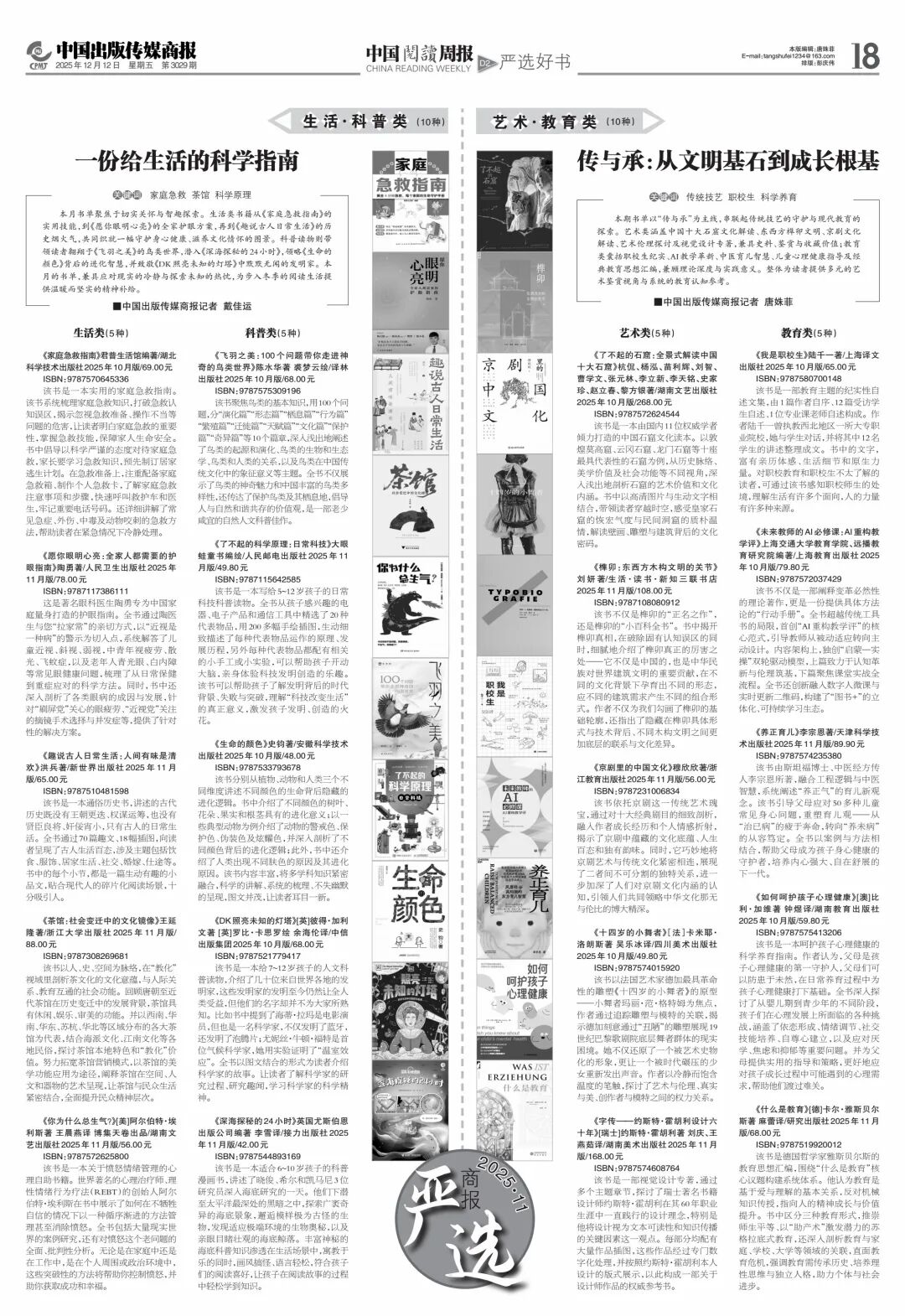 本月書單聚焦于切實關懷與智趣探索。生活類書籍從《家庭急救指南》的實用技能,到《愿你眼明心亮》的全家護眼方案,再到《趣說古人日常生活》的歷史煙火氣,共同織就一幅守護身心健康、滋養文化情懷的圖景。科普讀物則帶領讀者翱翔于《飛羽之美》的鳥類世界,潛入《深海探秘的24小時》,領略《生命的顏色》背后的進化智慧,并致敬《DK照亮未知的燈塔》中默默無聞的發明家。本月的書單,兼具應對現實的冷靜與探索未知的熱忱,為步入冬季的閱讀生活提供溫暖而堅實的精神補給。