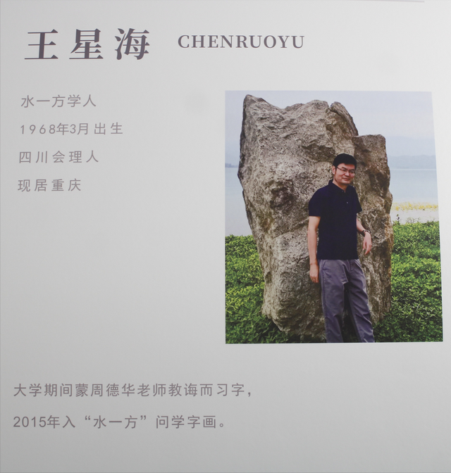 王星海,水一方學人,1968年3月出生,四川會理人,現居重慶。大學期間蒙周德華老師教誨而習字,2015年入“水一方”問學字畫。