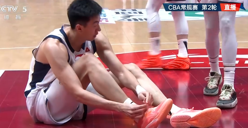 王少杰倒地扭了一下腳踝,他重新系鞋帶繼續鏖戰。