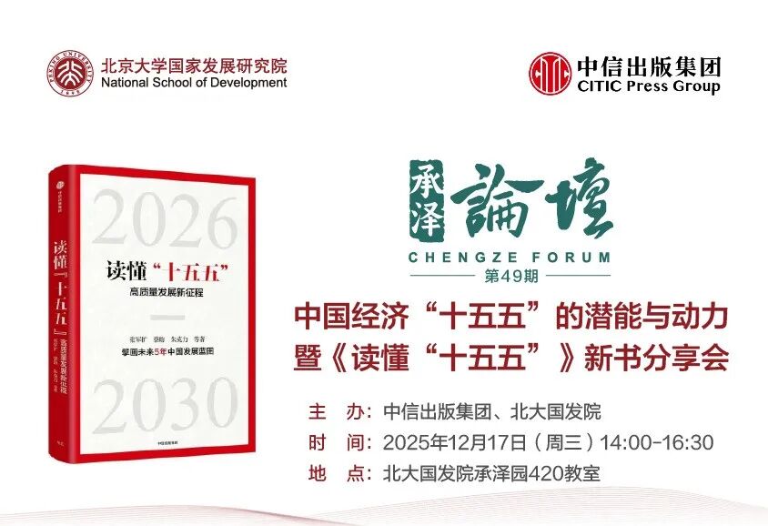 如何更好的把握“十五五”時期中國經濟發展的重點領域和關鍵任務,穿透復雜形勢,了解未來五年中國經濟發展方向?中信出版集團聯合北大國發院、北大中國經濟研究中心共同邀請劉尚希、黃群慧、羅志恒和朱克力四位嘉賓,結合《讀懂“十五五”:高質量發展新征程》一書,從宏觀到微觀進行系統性剖析,結合理論邏輯與發展實踐,進一步理解“十五五” 發展藍圖。