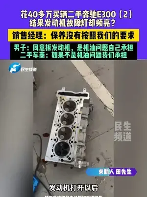 12月16日(發布)河南鄭州,花40多萬買輛二手車奔馳E300,結果發動機故障燈卻頻亮?銷售經理:保養沒有按照我們的要求,男子:同意拆發動機,是機油問題自己承擔,二手車商:如果不是機油問題我們承擔(2)(編輯:小胡)#媒體精選計劃