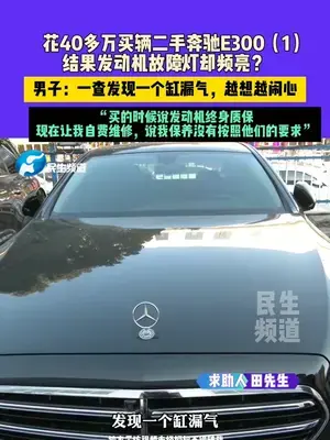 12月16日(發布)河南鄭州,花40多萬買輛二手車奔馳E300,結果發動機故障燈卻頻亮?男子:一查發現是一個缸漏氣,越想越鬧心,“買的時候說發動機終身質保,現在讓我自費維修,說我保養沒有按照他們的要求”(1)(編輯:小胡)#媒體精選計劃
