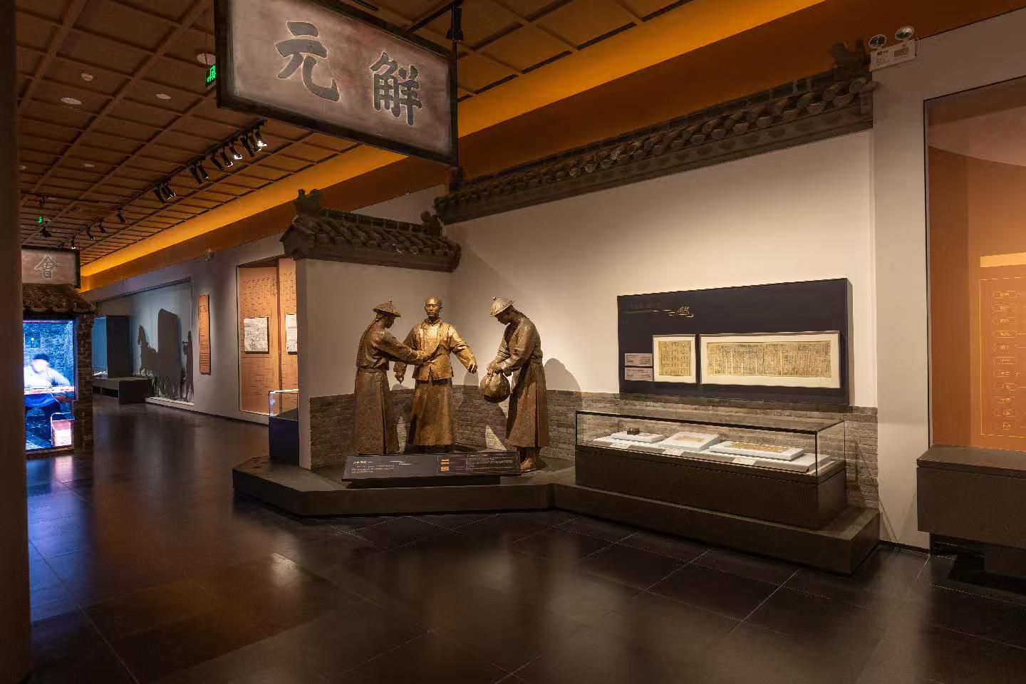第二部分“杏園征途”展示科舉士子們十年寒窗的奮斗歷程。展覽以清代科舉流程為樣本,通過童試、鄉(xiāng)試、會(huì)試、殿試四級(jí)考選場(chǎng)景復(fù)原,帶領(lǐng)觀眾穿越時(shí)空體驗(yàn)“十年寒窗——四級(jí)考試——一朝功名”的士子人生,生動(dòng)再現(xiàn)了古代士子從童生到進(jìn)士的艱辛歷程與輝煌成就。觀眾可在此感受古代士子的生活狀態(tài)與精神風(fēng)貌,領(lǐng)略科舉制度對(duì)個(gè)人命運(yùn)與社會(huì)發(fā)展的深遠(yuǎn)影響。