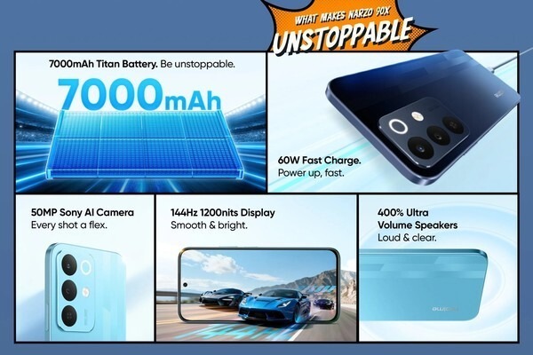 根據外媒的報道顯示,真我Narzo 90采用Victory Power設計語言,提供炭黑與勝利金兩款配色,采用6.8英寸AMOLED屏幕,支持144Hz刷新率,最高亮度可達4000nit。后置5000萬像素+200萬像素雙攝組合,前置5000萬像素自拍鏡頭,完全能滿足高質量自拍需求。此外,該機還提供六年電池質保,并配備旁路充電與反向充電功能。該機配備6GB+128GB組合起步,官方指導價為16999盧比(約合人民幣1300元)。