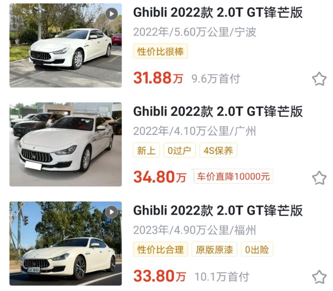 前兩天,一位后臺粉絲想出手自己22年買的Ghibli 2.0T版本,我問了一些朋友,在車況良好的情況下,回收價格絕對不會超過30萬!