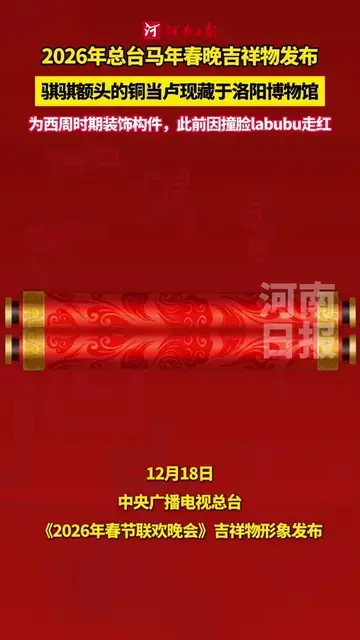 12月18日,2026年總臺(tái)馬年春晚吉祥物發(fā)布,其中,吉祥物“騏騏”額頭的銅當(dāng)盧,現(xiàn)藏于洛陽(yáng)博物館,為西周時(shí)期裝飾構(gòu)件。此前,因撞臉“l(fā)abubu”走紅。(記者 劉洋 曹潤(rùn)澤)