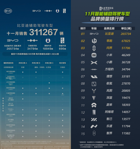 近日,比亞迪公布了其搭載天神之眼輔助駕駛系統(tǒng)的車型在11月的銷售數(shù)據(jù),全月銷量達(dá)311267輛,繼續(xù)引領(lǐng)市場。其中,比亞迪王朝與海洋系列貢獻(xiàn)265734輛,方程豹、騰勢、仰望等高端及個性化品牌亦表現(xiàn)穩(wěn)健,共同構(gòu)筑了比亞迪在智能駕駛領(lǐng)域的強(qiáng)大產(chǎn)品矩陣。