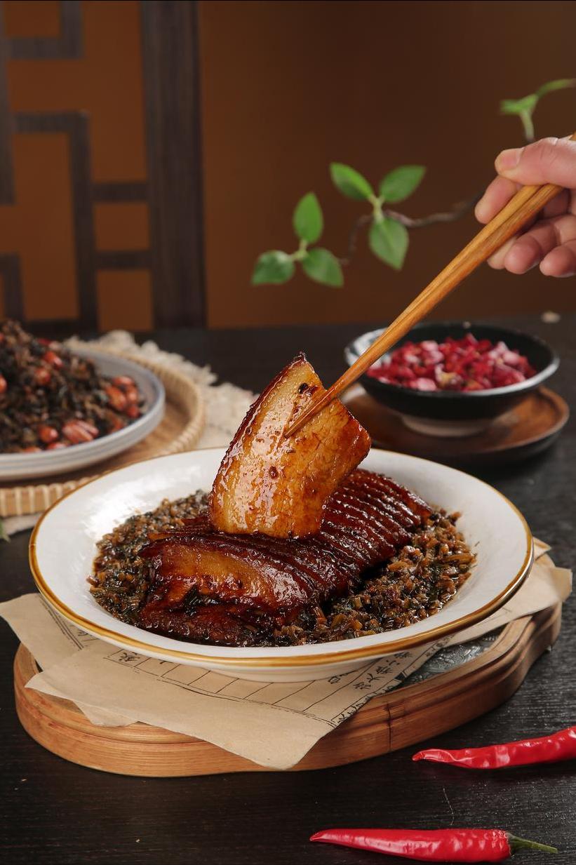 傳說(shuō)盧夫人得仙姑賜菜種,種出梅菜與五花肉一搭,肥而不膩,香得流油。