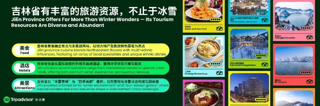 Tripadvisor貓途鷹(中國)現場發布聯合吉林打造的《吉林省旅游玩法指南》,依托全球4.9億用戶訪問量、10億條真實評論的資源優勢,以國際化語言全方位呈現吉林文旅魅力。伴隨政策紅利正在持續釋放,中國入境游市場正步入蓬勃發展的新階段;吉林省入境游以日韓俄等為主的市場增長潛力顯著,形成長春與延邊雙核驅動、多城市協同的增長矩陣,入境游客偏好高品質服務與歷史文化、自然奇觀、都市休閑三大主題體驗。該指南覆蓋吃住行等核心需求,基于數萬條真實評論精選優質文旅產品,為全球游客提供貼心攻略,助力吉林深耕入境游市場。
