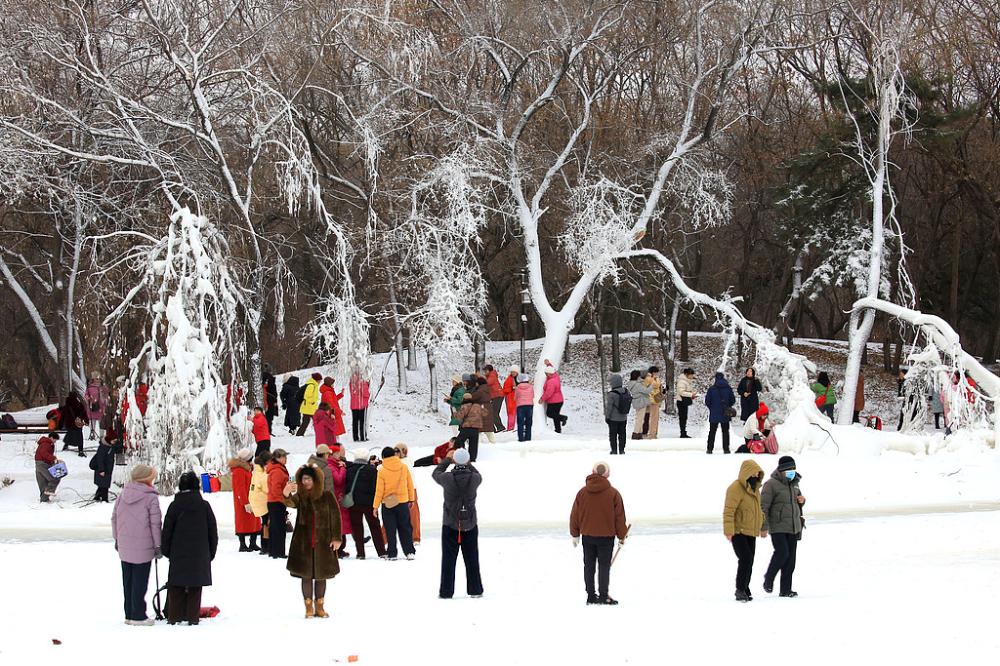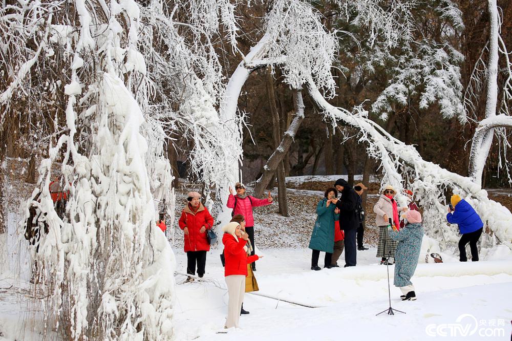 2025年12月18日,遼寧省沈陽(yáng)市北陵公園內(nèi)銀裝素裹的雪景與豐富冰上項(xiàng)目吸引眾多游客。視覺(jué)中國(guó)