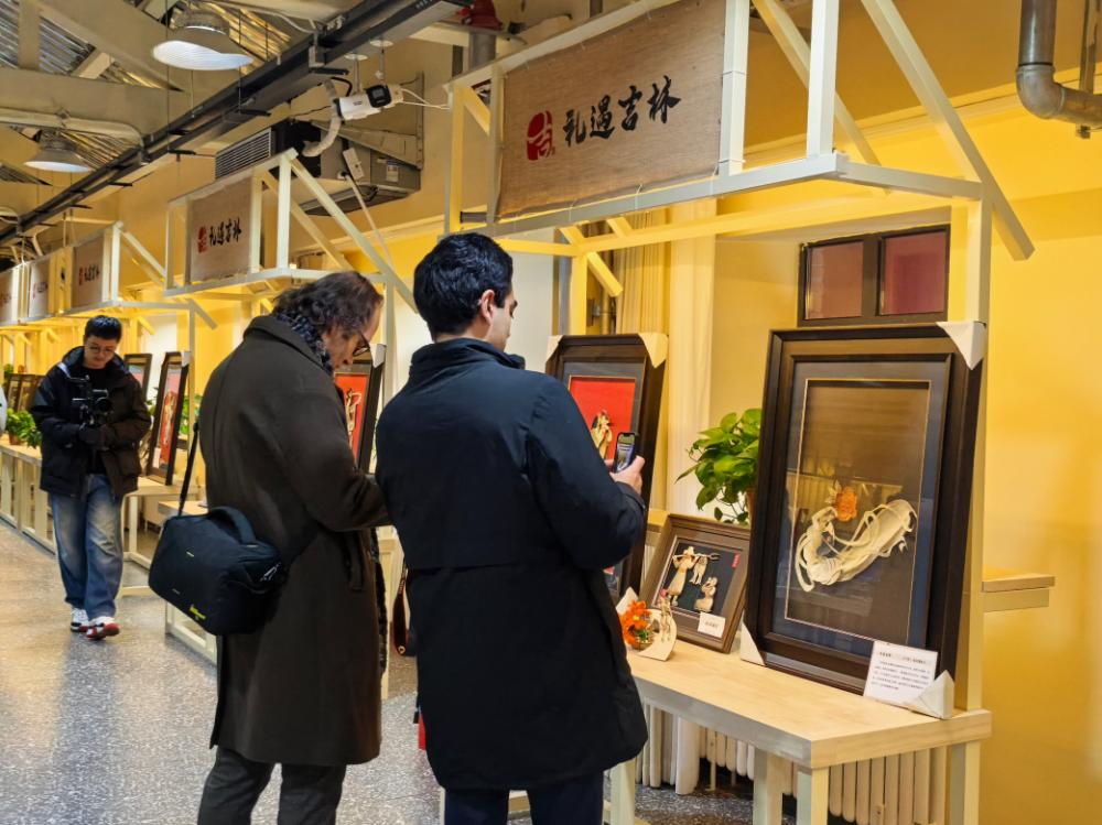 拾級而上,來到非遺手工體驗中心,吉林省非物質文化遺產查干湖魚皮畫成為又一亮點。在制作技藝傳承人徐毳的講解和引導下,大家投入到魚皮畫的制作中,久久不能自拔?!斑^去我只知道中國的剪紙,但從來沒有嘗試過魚皮畫。魚皮畫是把當地的材料和文化相結合,我覺得這是一次非常有意義的體驗?!庇谥忻勒f。
